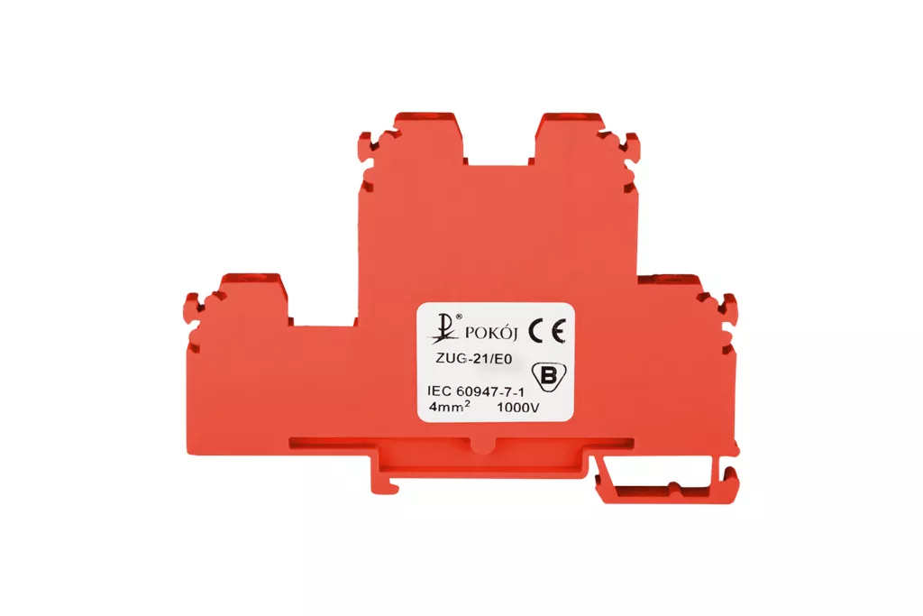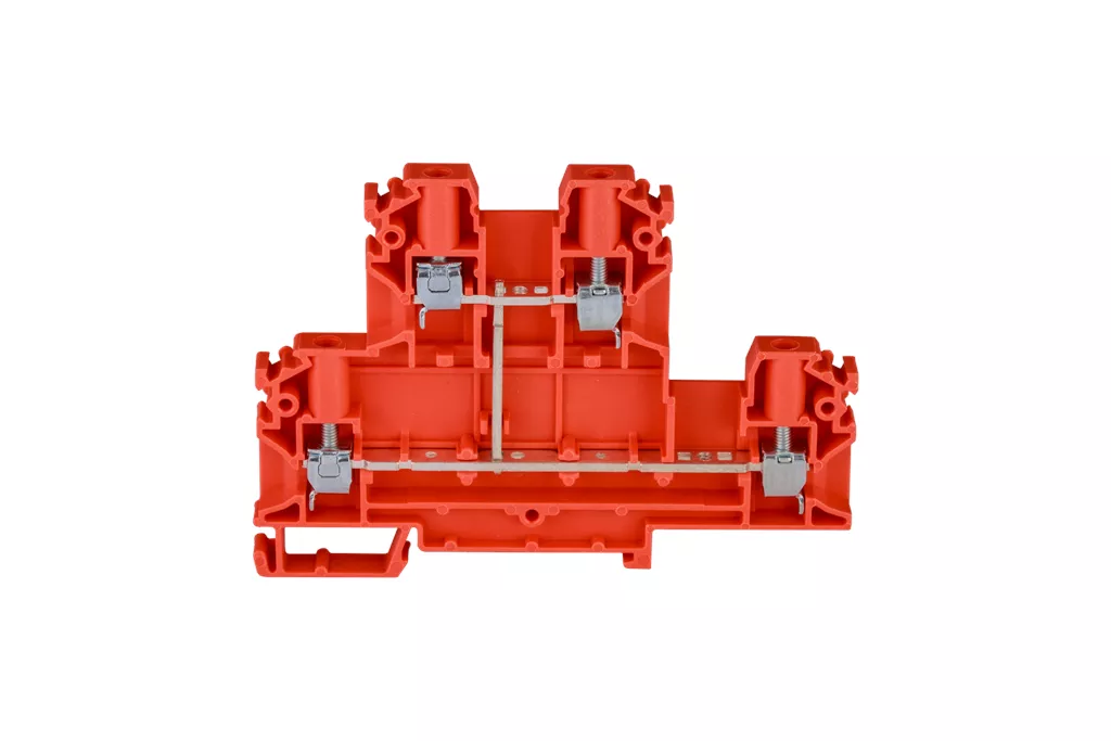Złączka szynowa 4-przewodowa 2-piętrowa z czterema zaciskami i zwartymi torami prądowymi 4 mm2 czerwony V0 ZUG-21/E0 A00-E007