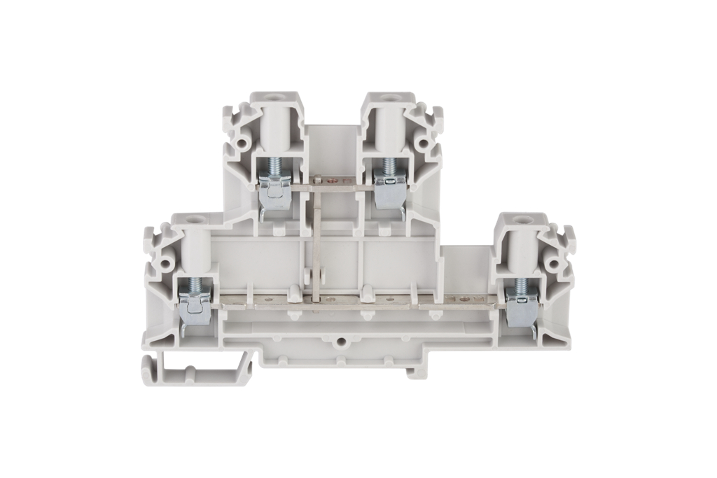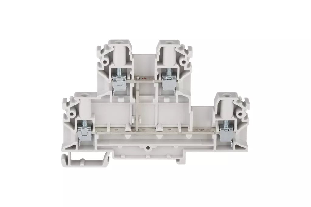 Złączka szynowa 4-przewodowa 2-piętrowa z czterema zaciskami i zwartymi torami prądowymi 4 mm2 szary V0 ZUG-21/E0 A00-E008