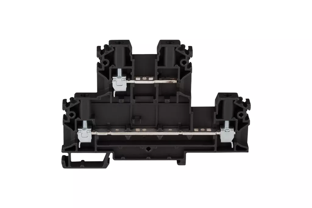 Złączka szynowa 4-przewodowa 2-piętrowa z trzema zaciskami 4mm2 czarny V0 ZUG-24 A00-D003