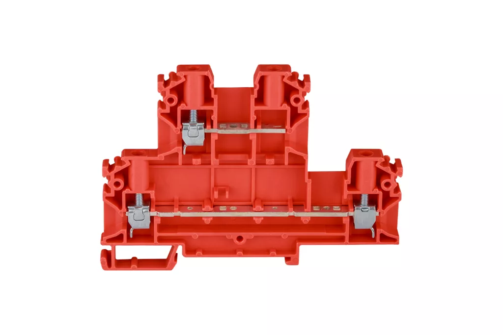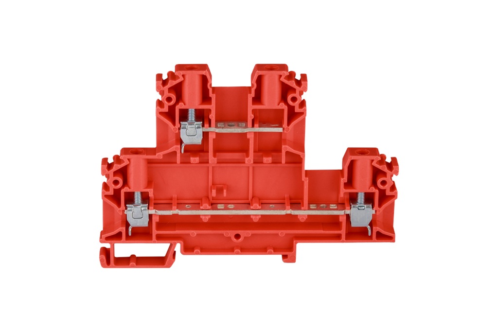 Złączka szynowa 4-przewodowa 2-piętrowa z trzema zaciskami 4mm2 czerwony V0 ZUG-24 A00-D007