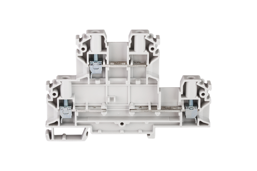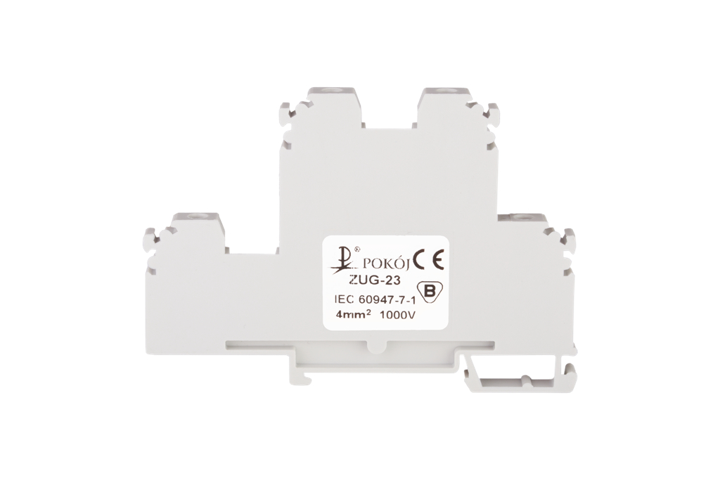 Złączka szynowa 4-przewodowa 2-piętrowa z trzema zaciskami i dzielonym torem prądowym 4mm2 biały V0 ZUG-23 A00-C002