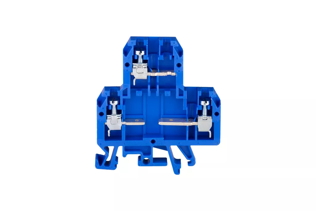 Złączka szynowa 4-przewodowa 2-piętrowa z trzema zaciskami i dzielonym torem prądowym 4mm2 niebieski ZUG-G/23 A00-2006