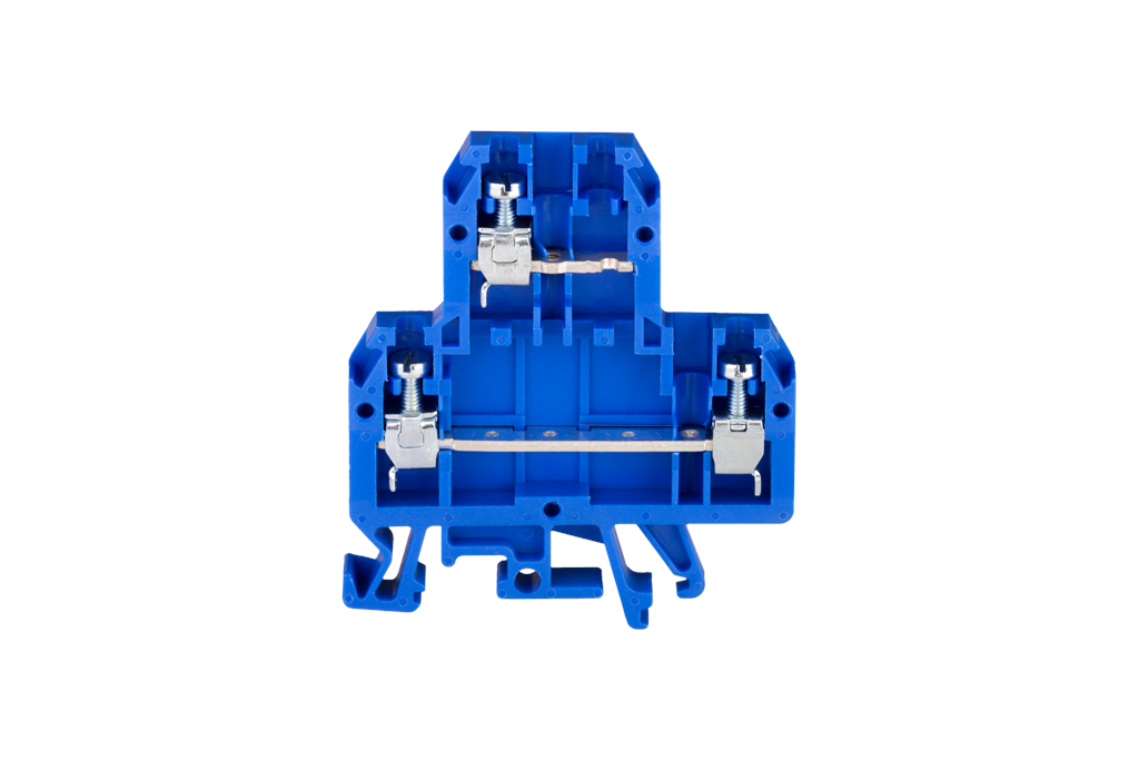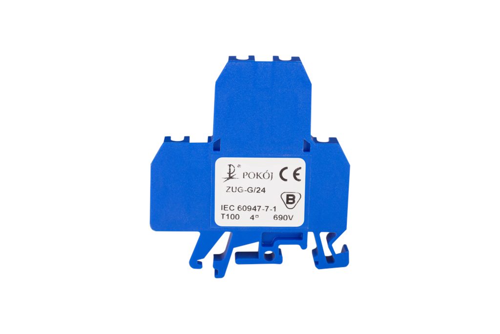 Złączka szynowa 4-przewodowa 2-piętrowa z trzema zaciskami i dzielonym torem prądowym 4mm2 niebieski ZUG-G/24 A00-3006