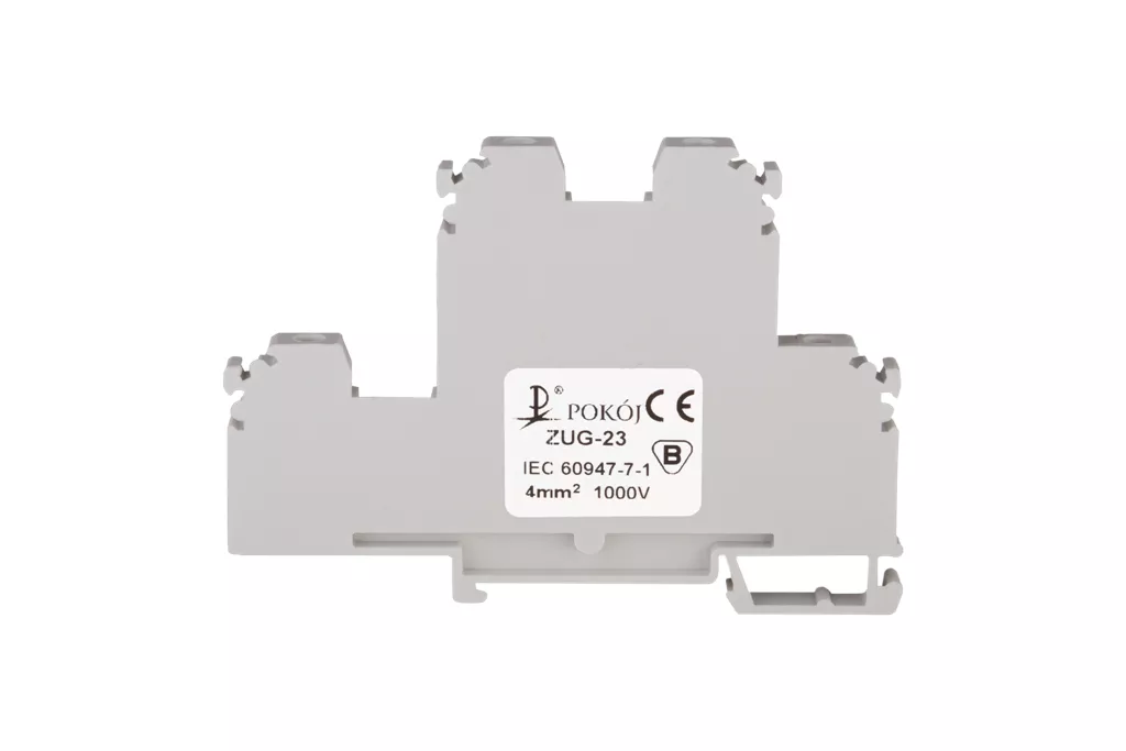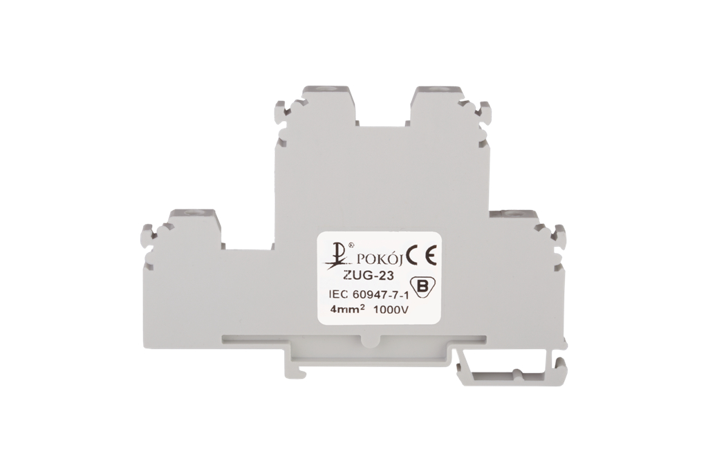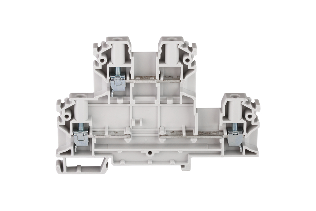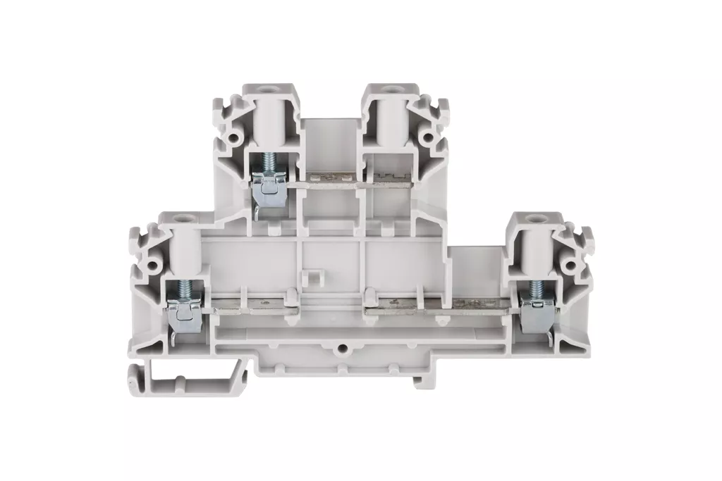 Złączka szynowa 4-przewodowa 2-piętrowa z trzema zaciskami i dzielonym torem prądowym 4mm2 szary V0 ZUG-23 A00-C008