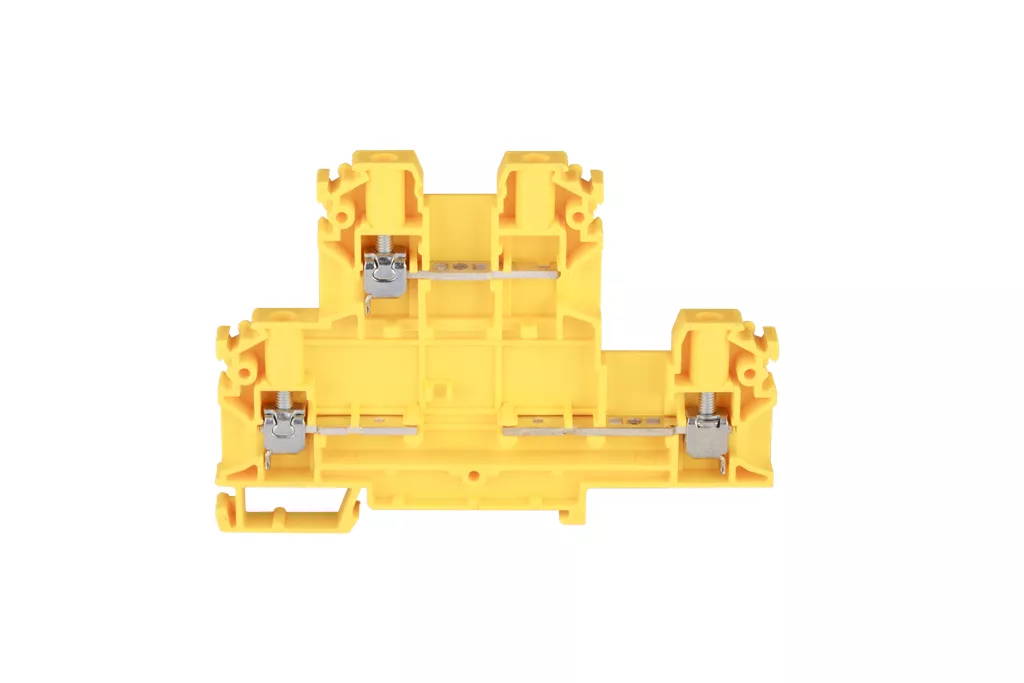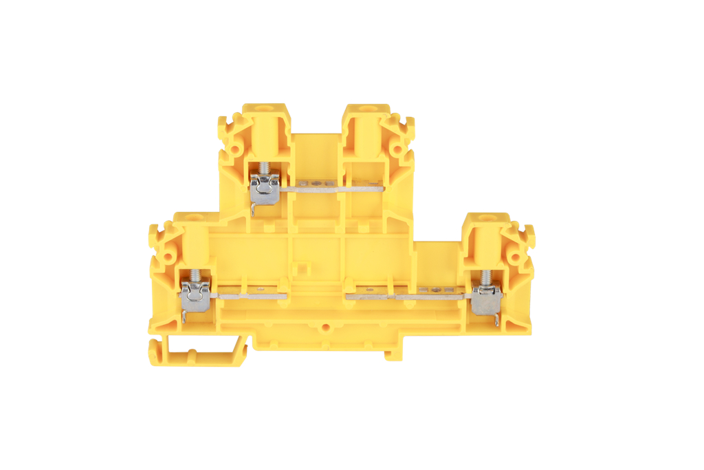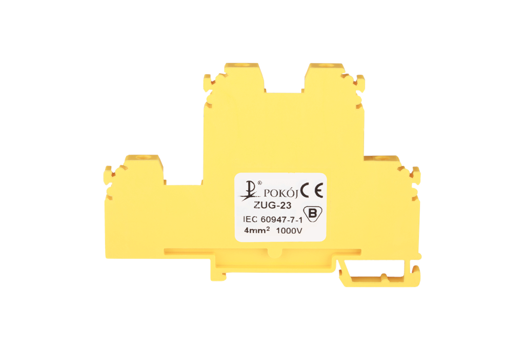 Złączka szynowa 4-przewodowa 2-piętrowa z trzema zaciskami i dzielonym torem prądowym 4mm2 żółty V0 ZUG-23 A00-C001