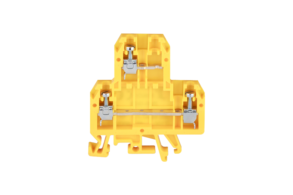 Złączka szynowa 4-przewodowa 2-piętrowa z trzema zaciskami i dzielonym torem prądowym 4mm2 żółty ZUG-G/24 A00-3001