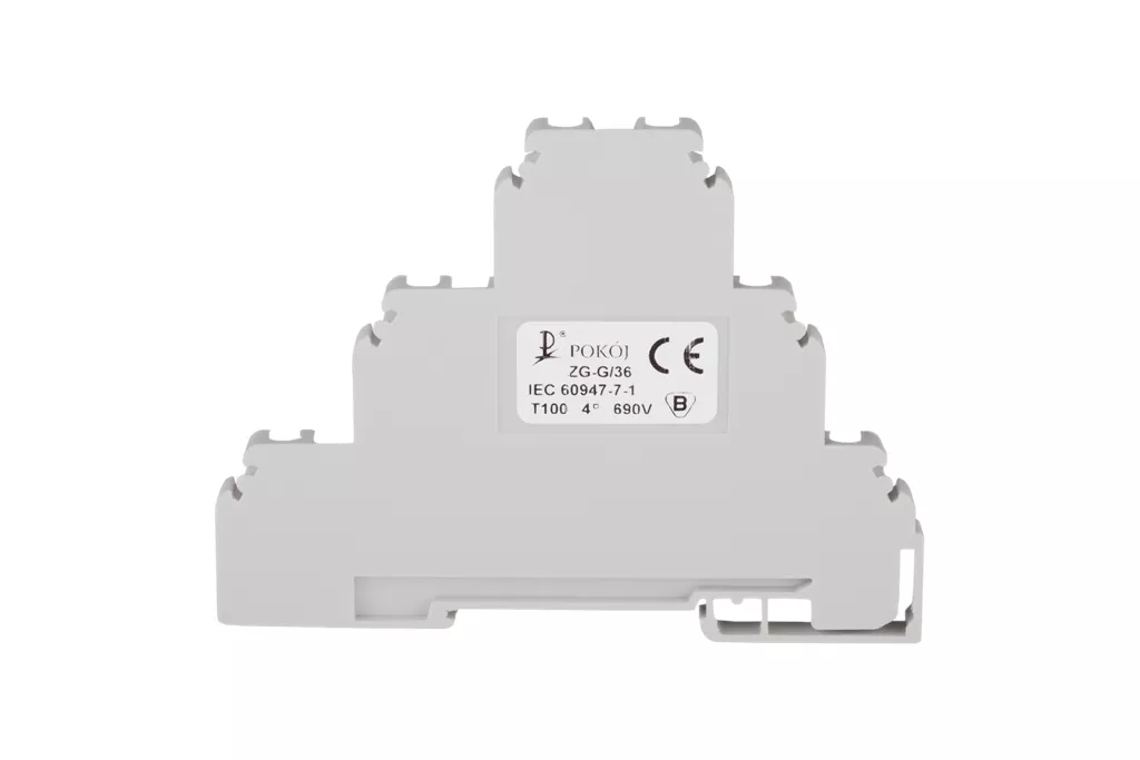 Złączka szynowa 6-przewodowa 3-piętrowa z pięcioma zaciskami i rozdzielonym dolnym i środkowym torem prądowym 4mm2 szary ZG-G/36 A03-5008