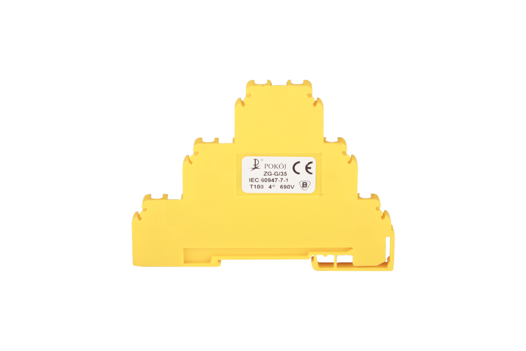 Złączka szynowa 6-przewodowa 3-piętrowa z pięcioma zaciskami i rozdzielonym środkowym torem prądowym 4mm2 żółty ZG-G/35 A03-4001