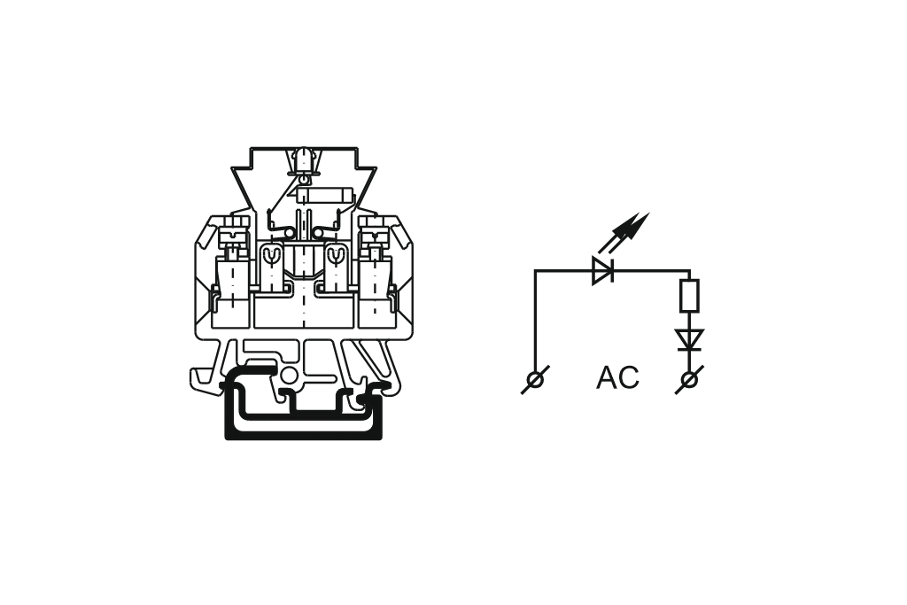 Złączka szynowa bezpiecznikowa 2-przewodowa 4mm2 dioda zielona 48V AC ZUG-G/BS2 A02-2451