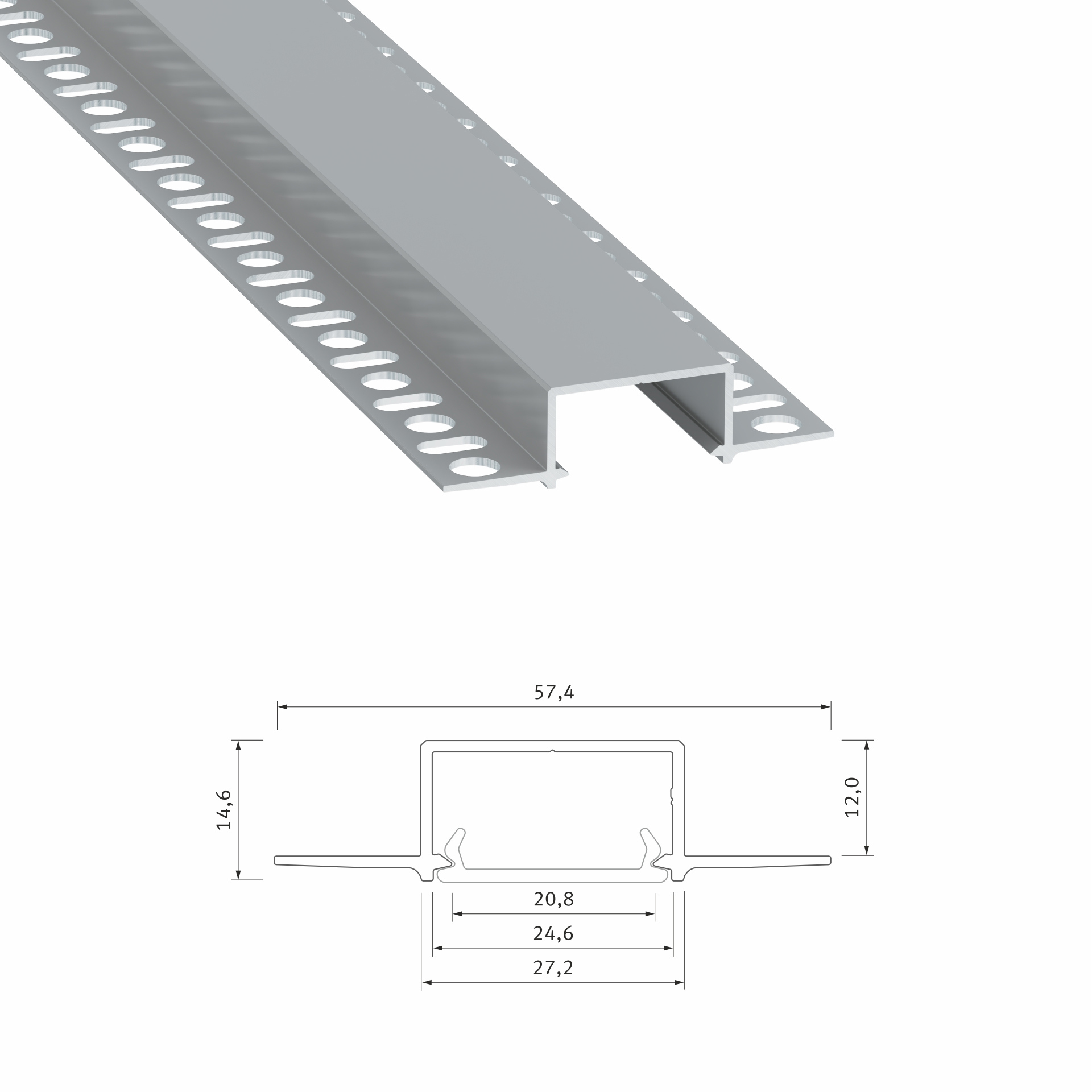 PROFIL LED PODTYNKOWY HIRO, G-K, 202cm, ALUMINIOWY, SREBRNY ANODOWANY