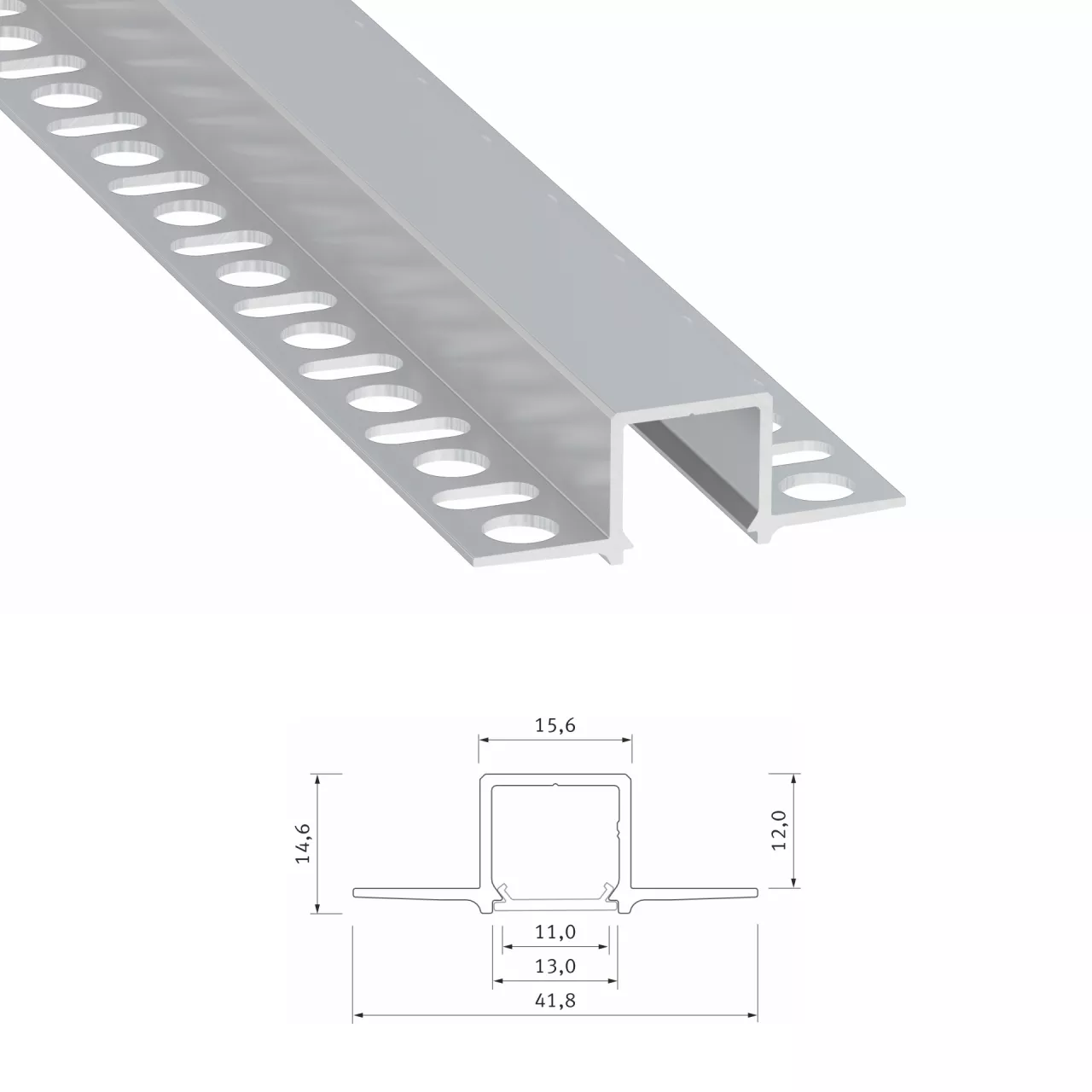 PROFIL LED PODTYNKOWY GAUDI, G-K, 202cm, ALUMINIOWY, SREBRNY ANODOWANY