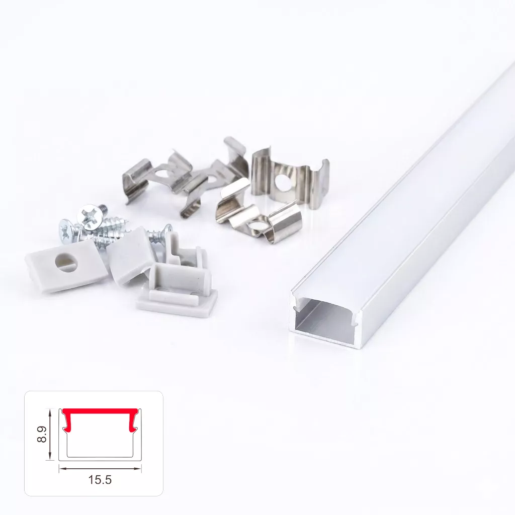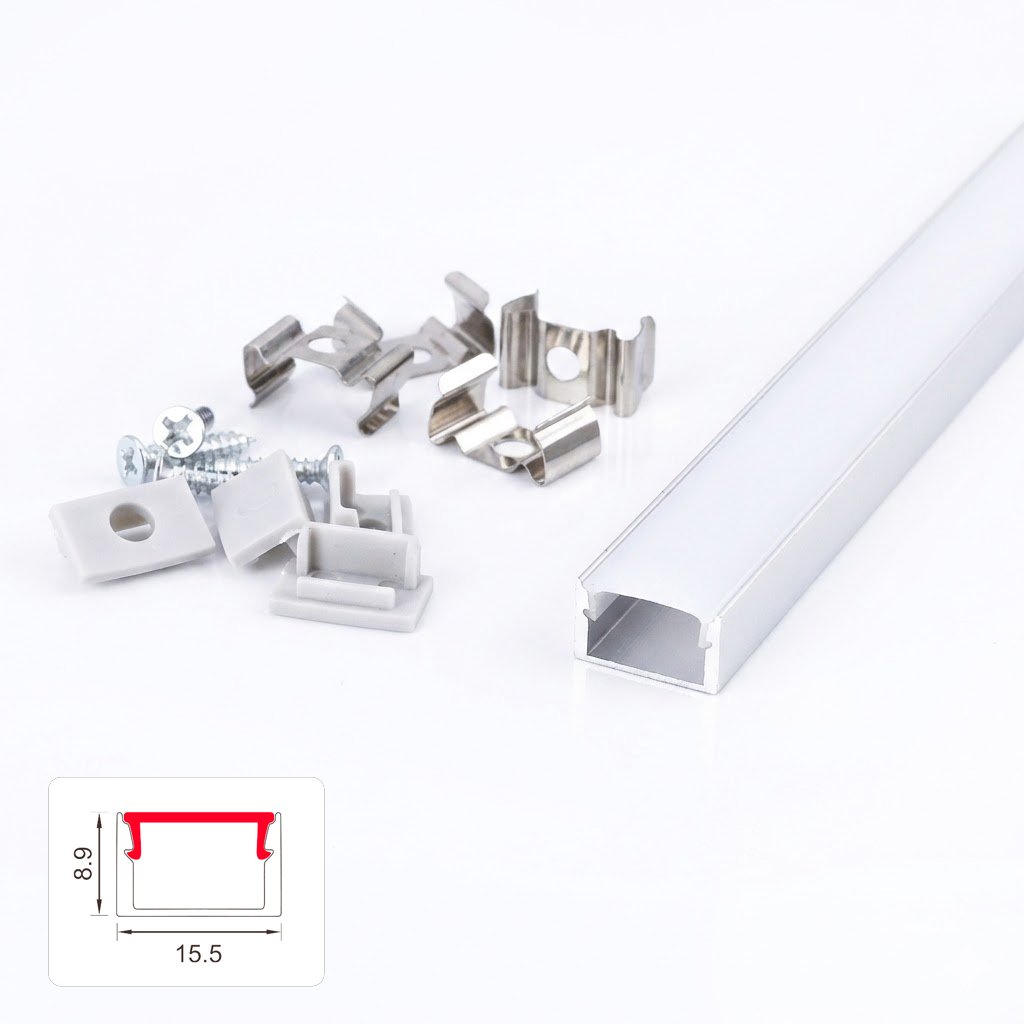 ZESTAW PROFIL LED NEXTEC NATYNKOWY TYP NTA + KLOSZ PC MLECZNY + 4 ZAŚLEPKI, 202cm, ANODA