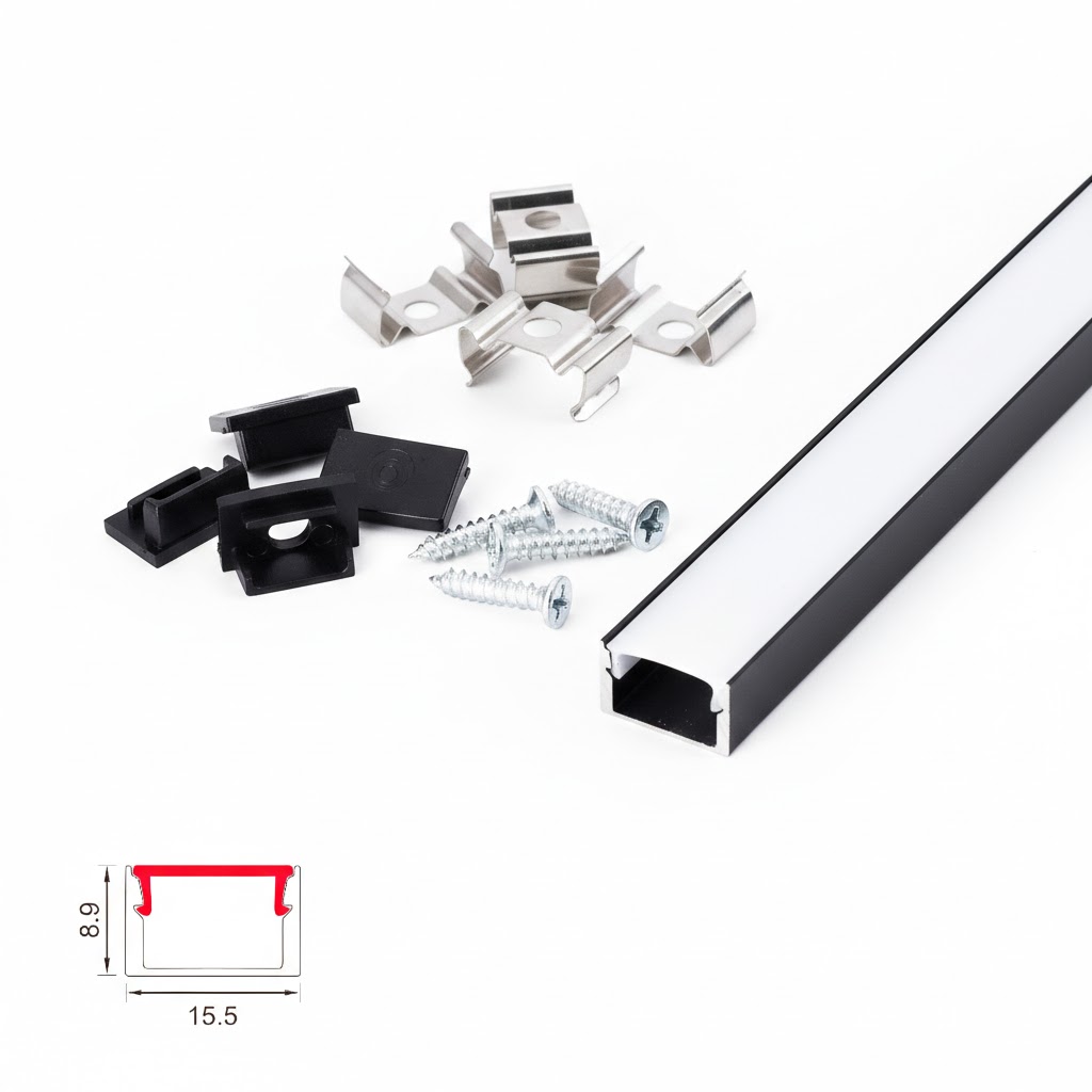 ZESTAW PROFIL LED NEXTEC NATYNKOWY TYP NTA + KLOSZ PC MLECZNY + 4 ZAŚLEPKI, 202cm, CZARNA ANODA