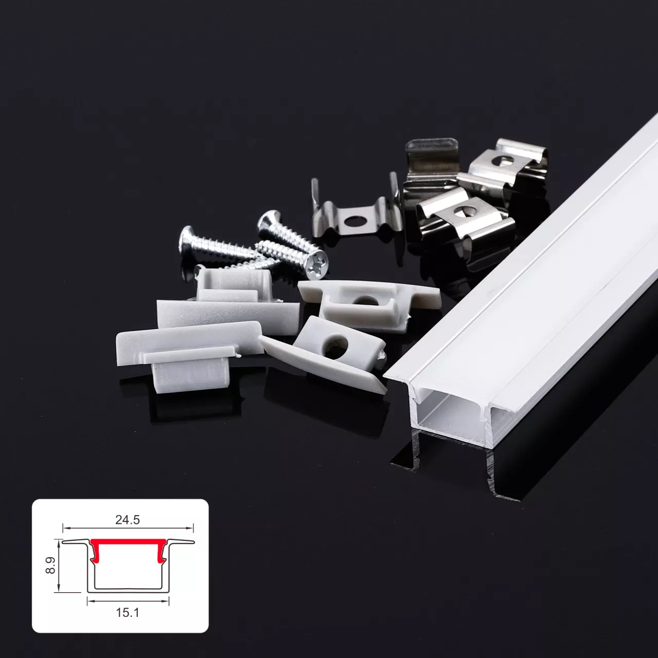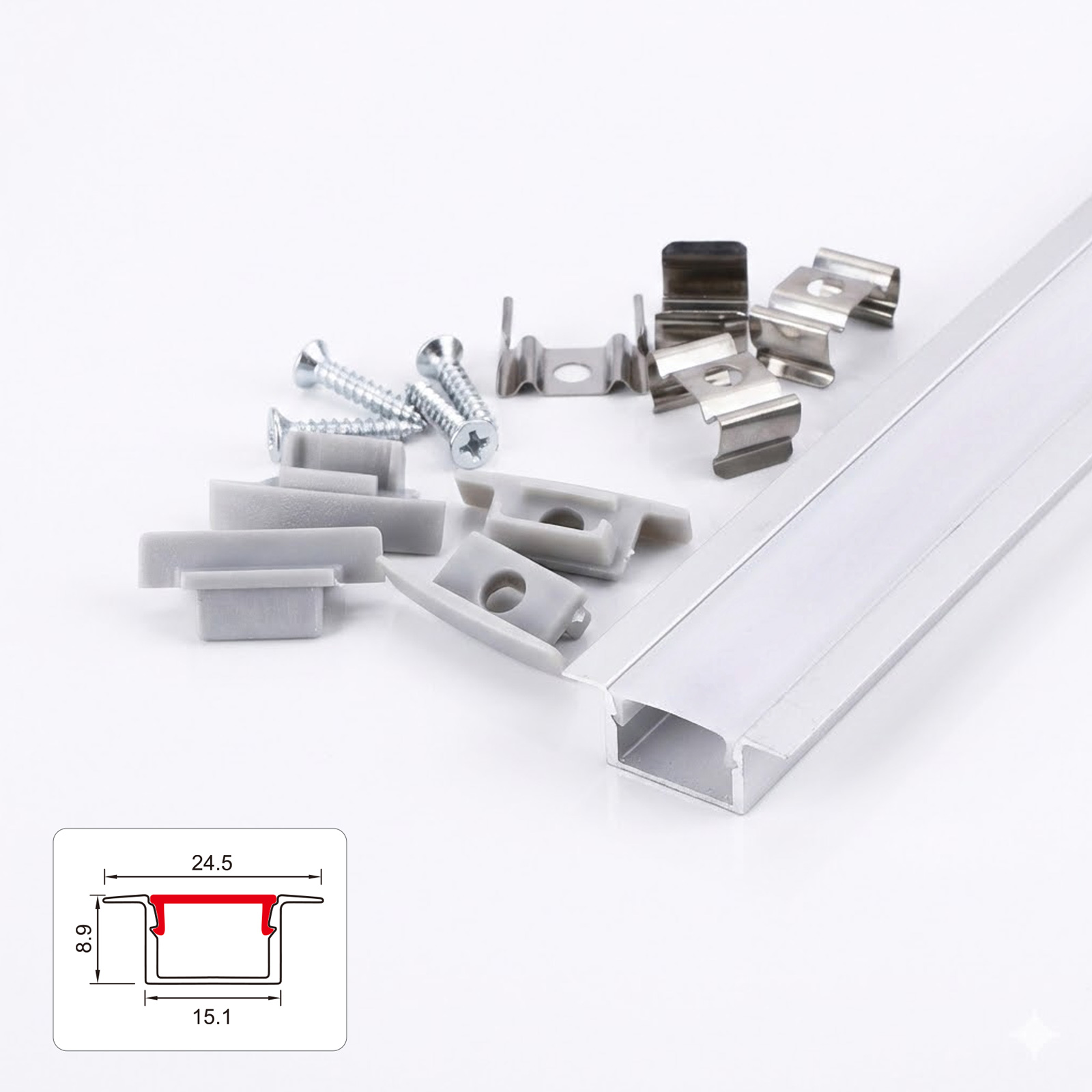 ZESTAW PROFIL LED NEXTEC PODTYNKOWY TYP PTA + KLOSZ PC MLECZNY + 4 ZAŚLEPKI, 202cm, ANODA