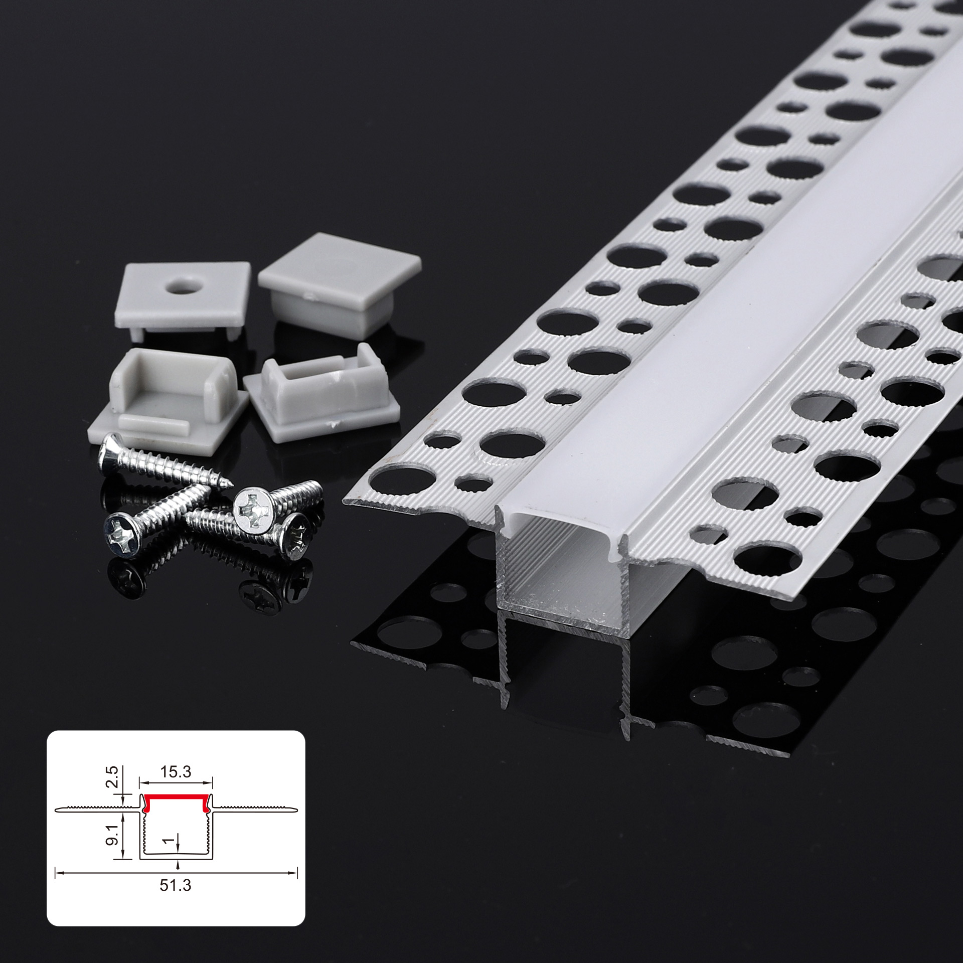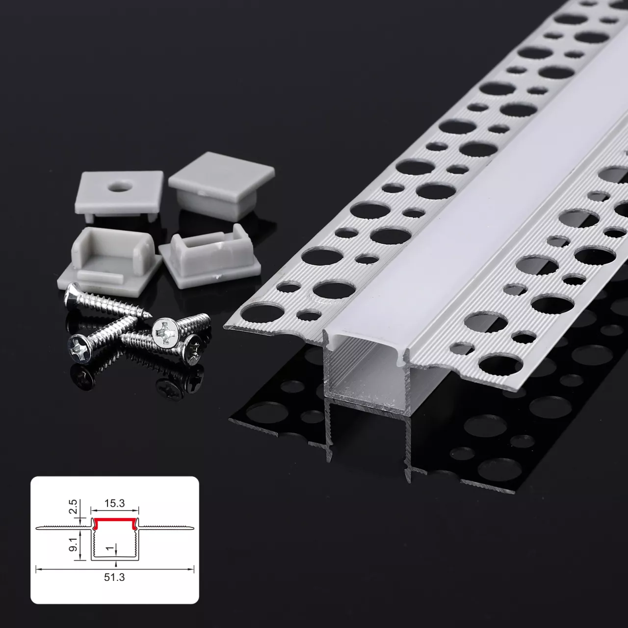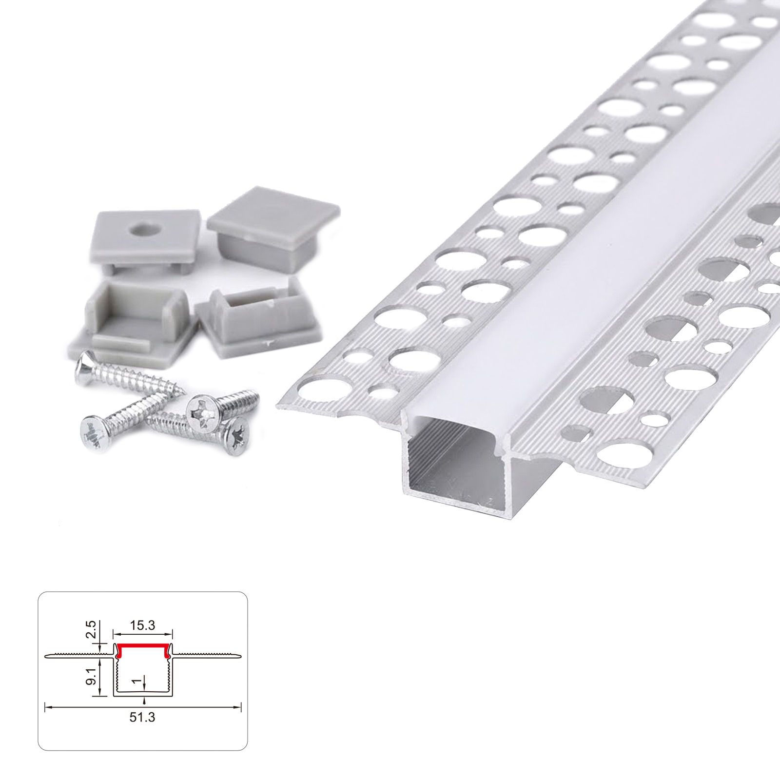 ZESTAW PROFIL LED NEXTEC PODTYNKOWY TYP DO REGIPSU + 2xKLOSZ + 4 ZAŚLEPKI, 202cm, ANODA