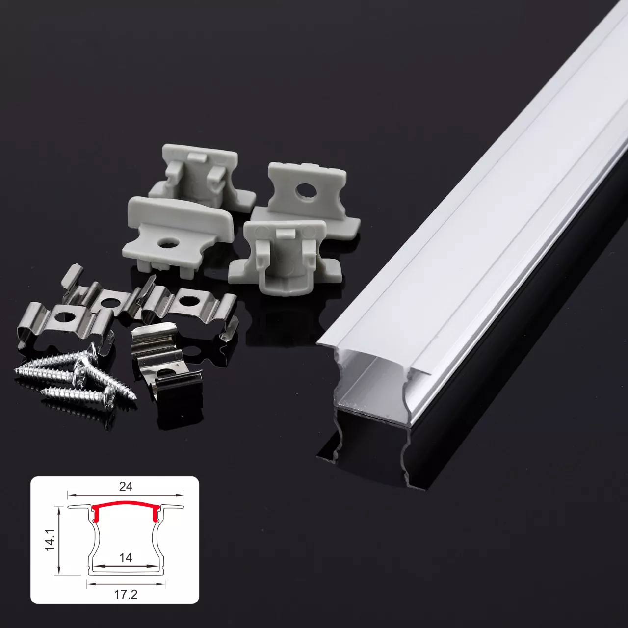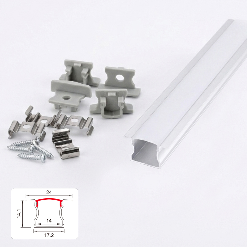 ZESTAW PROFIL LED NEXTEC PODTYNKOWY TYP PTC (głęboki) + KLOSZ PC MLECZNY+ 4 ZAŚLEPKI, 202cm, ANODA