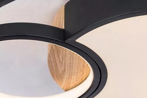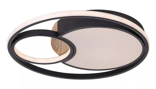 Sufitowa oprawa smart Leola dzięki unikalnemu wzornictwu, dużej jasności światła i wielu dodatkowym funkcjom jest fantastycznym wyborem do wielu nowoczesnych salonów. Wykonana z metalu oprawa w kolorze matowej czerni jest uzupełniona białym kloszem z tworzywa sztucznego, a design jest charakterystyczny dzięki połączeniu mniejszych i większych elementów w kształcie okrągu. Oprawa Leola posiada wbudowane źródło światła LED klasy energetycznej G o mocy 81 W, strumieniu świetlnym z kloszem - 3800 lumenów, bez klosza - 9100 lumenów. Trwałość źródła światła wynosi 15.000 godzin. Temperatura barwowa oprawy sufitowej jest regulowana za pomocą przełącznika ściennego lub pilota: możliwe ustawienia 3000, 4000 lub 6000 K. Istnieje możliwość ściemniania oprawy za pomocą pilota, tj. jej jasność jest regulowana, jest ponadto wyposażona w funkcję pamięci regulowaną przełącznikiem oraz funkcę timera ustawianą za pomocą pilota. Dodatkowym atutem jest funkcja oświetlenia nocnego. Średnica oprawy sufitowej wynosi 480 mm, a odległość od sufitu 75 mm.