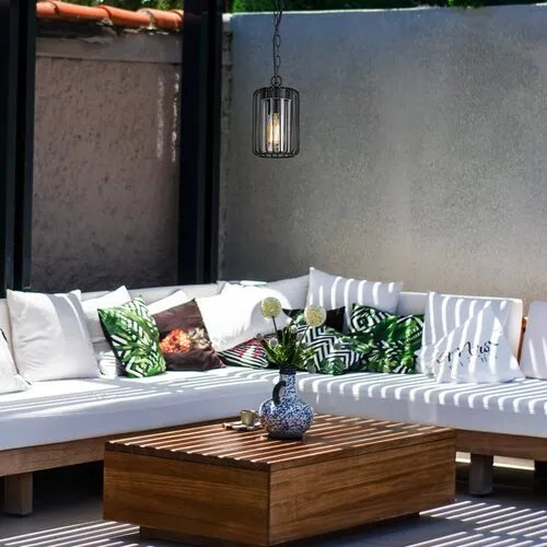 Zewnętrzna lampa wisząca Rabalux Tarpa to idealny wybór dla osób, które cenią industrialny styl. Wykonana jest z metalu w kolorze czarnym, a jej klosz z tworzywa sztucznego jest przezroczysty. Charakterystyczną cechą designu jest ażurowy zewnętrzny klosz, który otacza cylindryczny wewnętrzny klosz, przez który światło swobodnie przepływa z wnętrza lampy. Lampa zewnętrzna może być używana z jedną żarówką o mocy do 40 W. Typ gniazda to E27. Lampa wisząca jest idealna na taras, gdzie można ją używać z żarówką emitującą ciepłe białe światło, tworząc przytulną, intymną atmosferę. Lampa jest chroniona przed wnikaniem cząstek stałych o średnicy 1 mm lub większej oraz przed wodą rozpryskiwaną z dowolnego kierunku, więc nie musisz martwić się, jeśli zacznie padać deszcz. Produkt dostarczany jest bez źródła światła.