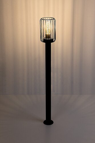 Zewnętrzna lampa stojąca Rabalux Tarpa to propozycja dla miłośników stylu industrialnego. Przypominająca kształtem dużą pochodnię, lampa wykonana jest z metalu w kolorze czarnym, a jej wymienna żarówka jest osłonięta przezroczystym, cylindrycznym kloszem z tworzywa sztucznego. Charakterystycznym elementem designu jest zewnętrzny, ażurowy klosz otaczający wewnętrzny, przez który światło swobodnie przepływa na zewnątrz. Ta lampa ogrodowa może być używana z jedną żarówką o mocy do 40 W. Typ gniazda to E27. Idealnie sprawdzi się w ogrodzie lub na tarasie, gdzie w połączeniu z żarówką emitującą ciepłe białe światło stworzy przytulną, intymną atmosferę. Lampa jest chroniona przed wnikaniem cząstek stałych o średnicy 1 mm lub większej oraz przed wodą rozpryskiwaną z dowolnego kierunku. Produkt dostarczany jest bez źródła światła.