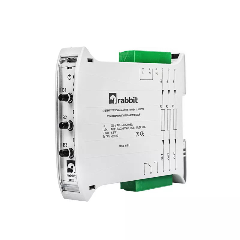 Sygnalizator stanu zabezpieczeń to urządzenie, które służy do wykrywania i sygnalizowania przepalonych wkładek bezpiecznikowych lub zabezpieczeń nadprądowych „S”. Status każdego zabezpieczenia będącego pod nadzorem jest monitorowany na bieżąco. Wykrywanie stanu awarii trwającego powyżej 2 sekund i obniżenia napięcia poniżej 160 V, optyczna sygnalizacja stanu pracy, praca w obowoach 1,2 lub 3 fazowych, montaż na szynę TH-35, szerokość 17,5 mm, separacja galwaniczna obwodów pomiarowych z obwodem zasilania urządzenia (dwa niezależne złącza: N, Np), możliwość pracy urządzenia z niezależnym źródłem zasilania np. UPC.