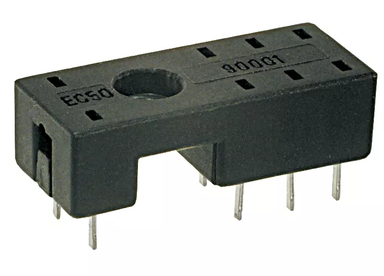 Gniazdo wtykowe do obwodów drukowanych do przekaźników RM84, RM85, RM87L, RM87P, RMP84, RMP85 do obwodu drukowanego. Wymiary: 31 x 12,7 x 9 mm. Raster 5 mm. Obciążalność toru: 8 A / 300 V AC. Obejmy: MP16-2, MP25-2, MH16-2, MH25-2.
