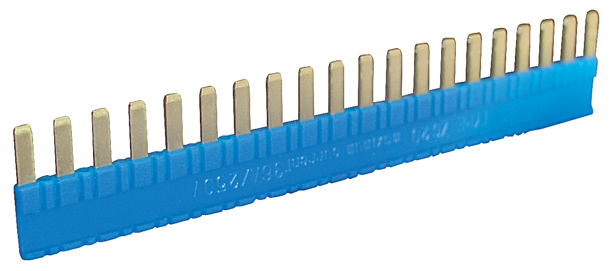Złącze grzebieniowe 20-zębowe, do mostkowania wspólnych sygnałów wejść lub wyjść, kolor niebieski. Do PI6, PIR6W, PIR6WB, PIR6WT, PIR6WBT. Maksymalny dopuszczalny prąd 36 A / 250 V AC.