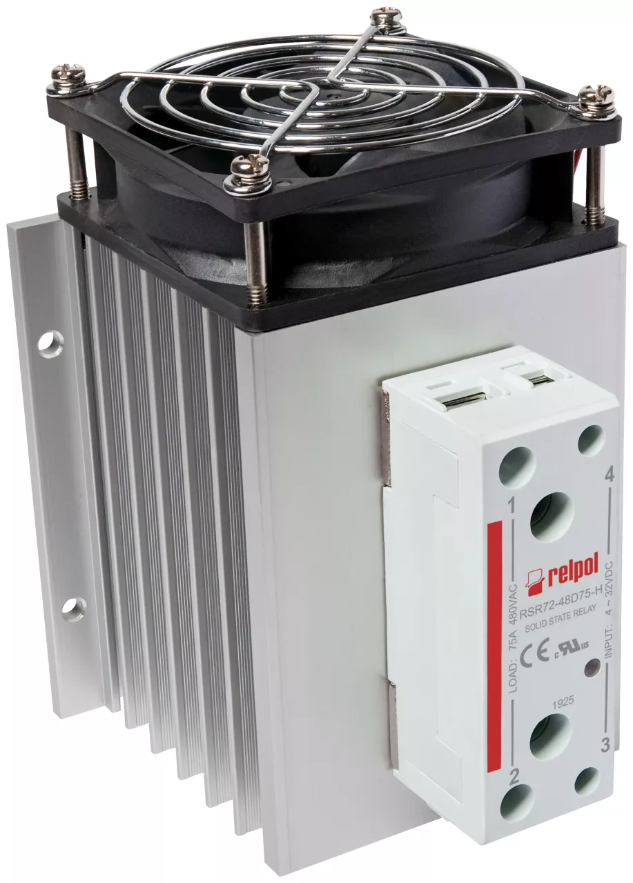 Przekaźniki półrzewodnikowe jednofazowe - załączanie w zerze. Napięcie obciążenia 480 V AC. Wejście sterujące 4…32V DC. Obciążenie znamionowe AC1 - 75/480 V AC. Zintegrowany z radiatorem