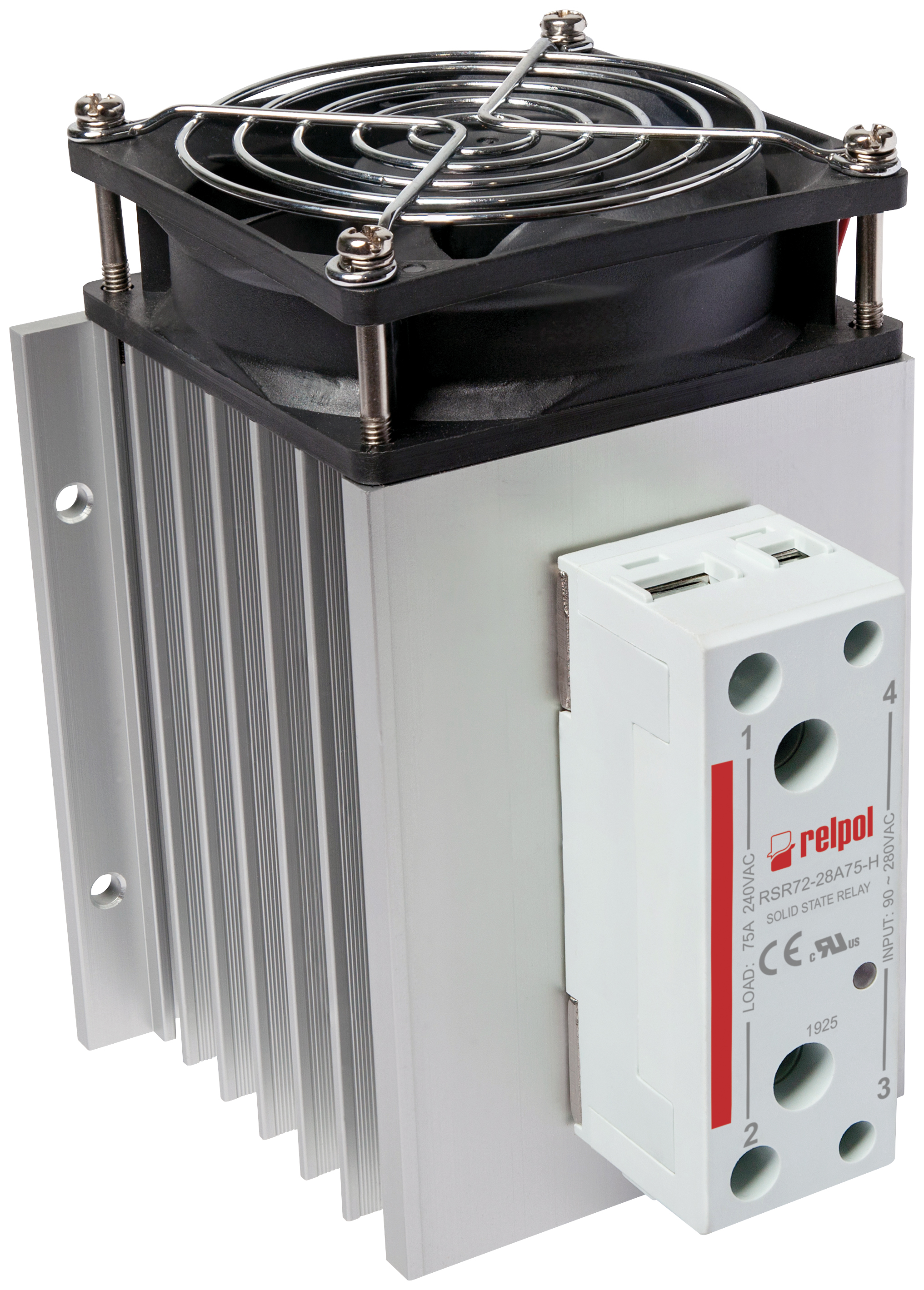 Przekaźniki półrzewodnikowe jednofazowe - załączanie w zerze. Napięcie obciążenia 240 V AC. Wejście sterujące 90…280 V AC. Obciążenie znamionowe AC1 - 75/240 V AC. Zintegrowany z radiatorem