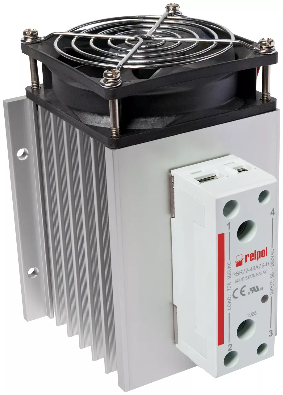 Przekaźniki półrzewodnikowe jednofazowe - załączanie w zerze. Napięcie obciążenia 480 V AC. Wejście sterujące 90…280 V AC. Obciążenie znamionowe AC1 - 75/480 V AC. Zintegrowany z radiatorem