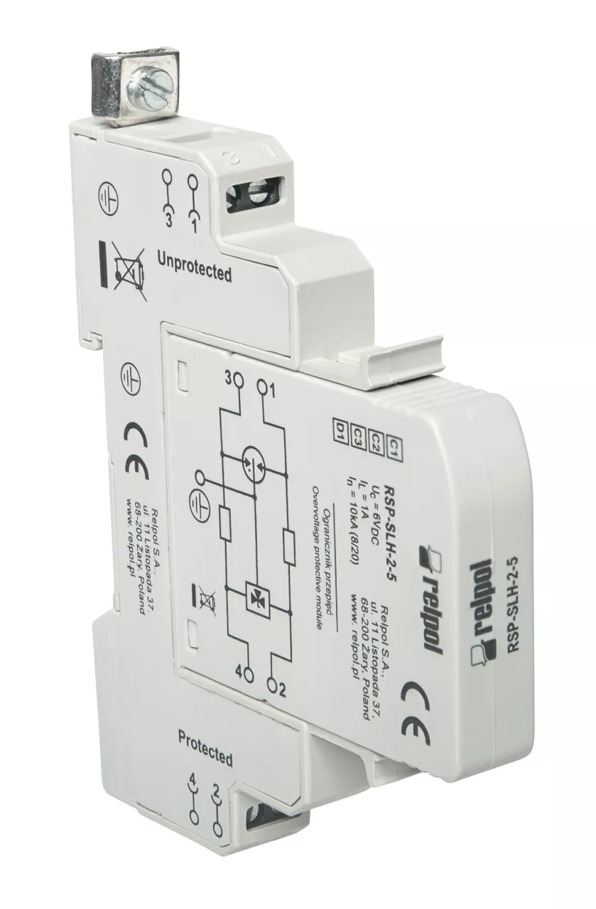 Ogranicznik przepięć do linii danych i sygnałów w systemach infrastruktury energetycznej, 12 V DC RSP-SLH-2-12