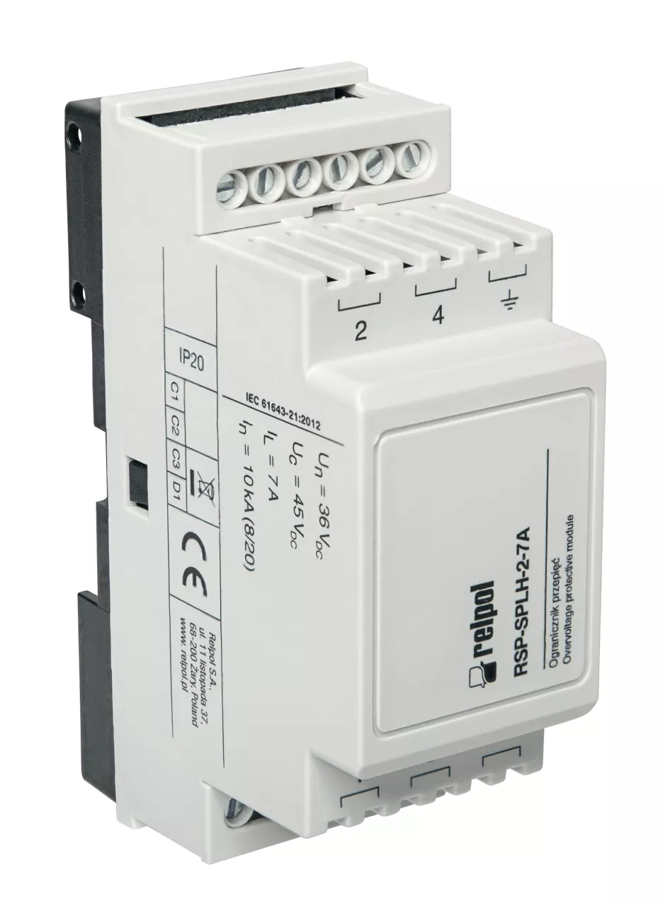 Ogranicznik przepięć do ochrony źródła zasilania DC w systemach infrastruktury energetycznej, 45 V DC RSP-SPLH-2-7A