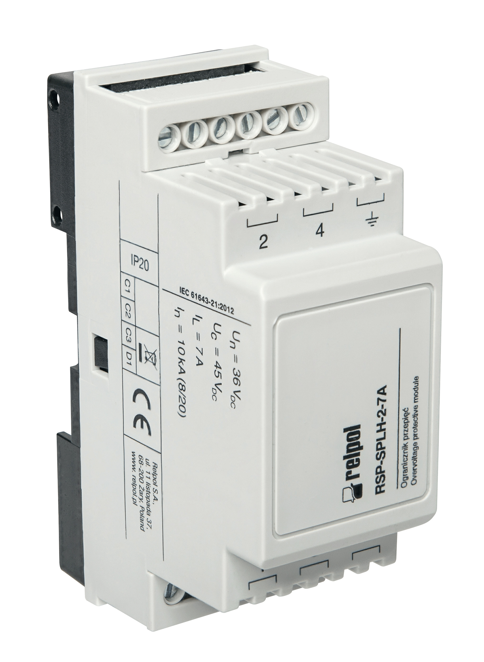 Ogranicznik przepięć do ochrony źródła zasilania DC w systemach infrastruktury energetycznej. Znamionowe napięcie pracy: 36 V DC. Maksymalne napięcie pracy ciągłej: 45 V DC. Czas zadziałania ochrony przeciwprzepięciowej: < 1 ns.