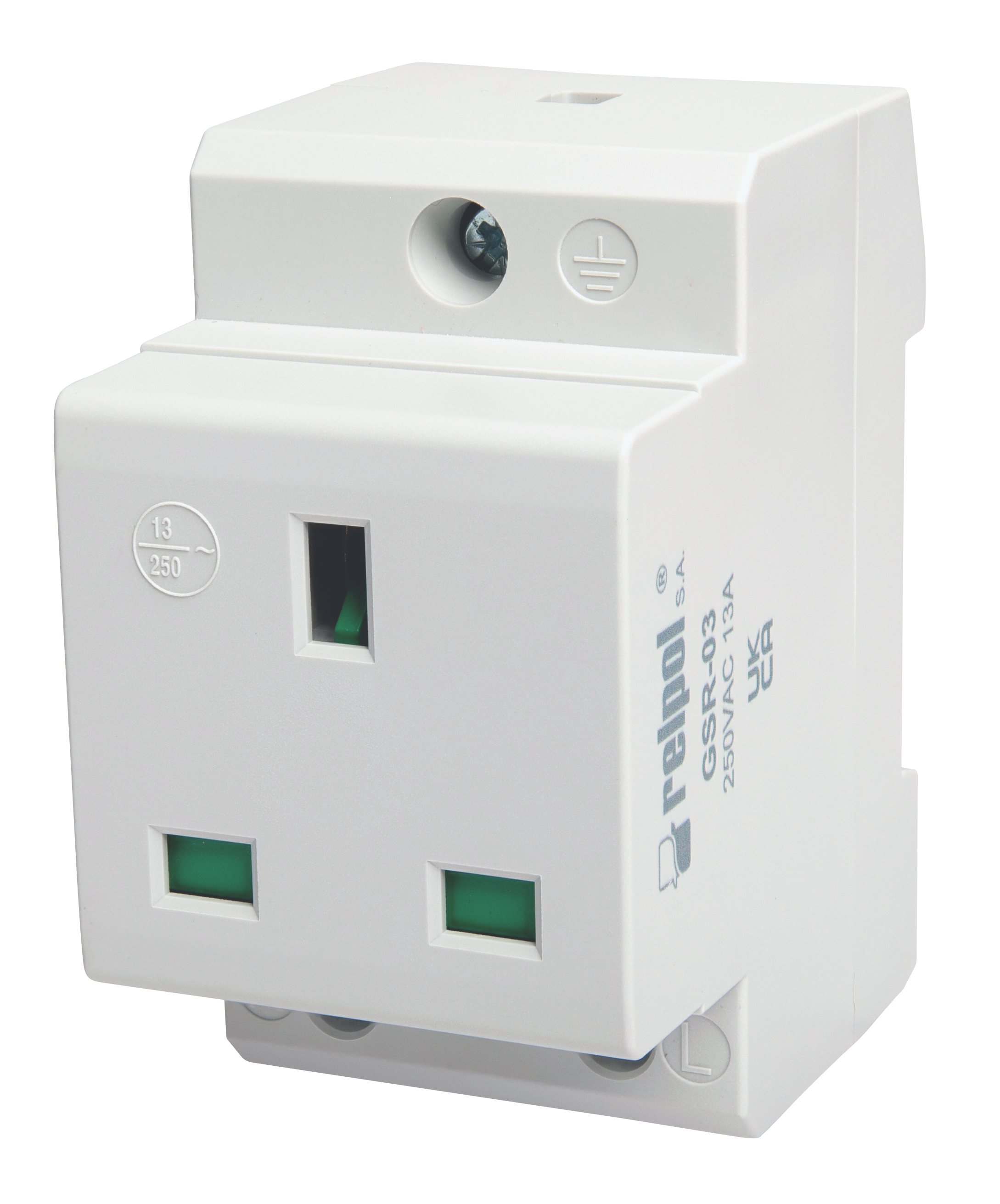 Gniazdo na szynę TH-35 do rozdzielni, w standardzie UK typu G, 13 A