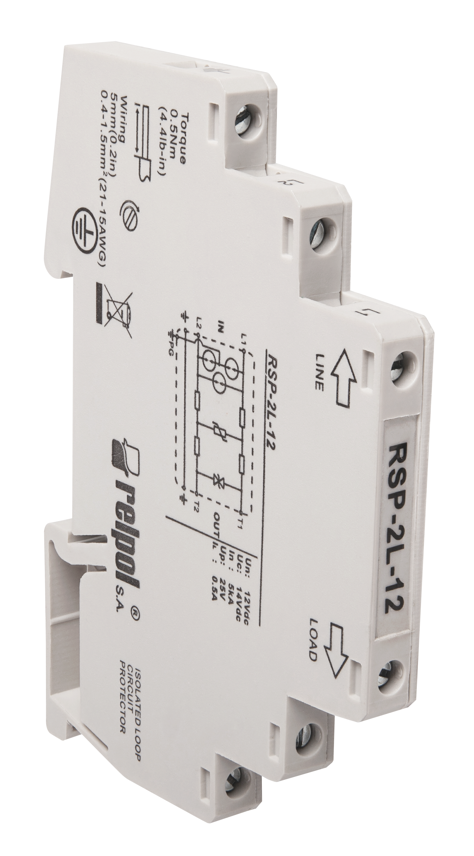 Ogranicznik przepięć DC do ochrony linii danych/sygnałowych, 12 V DC RSP-2L-12