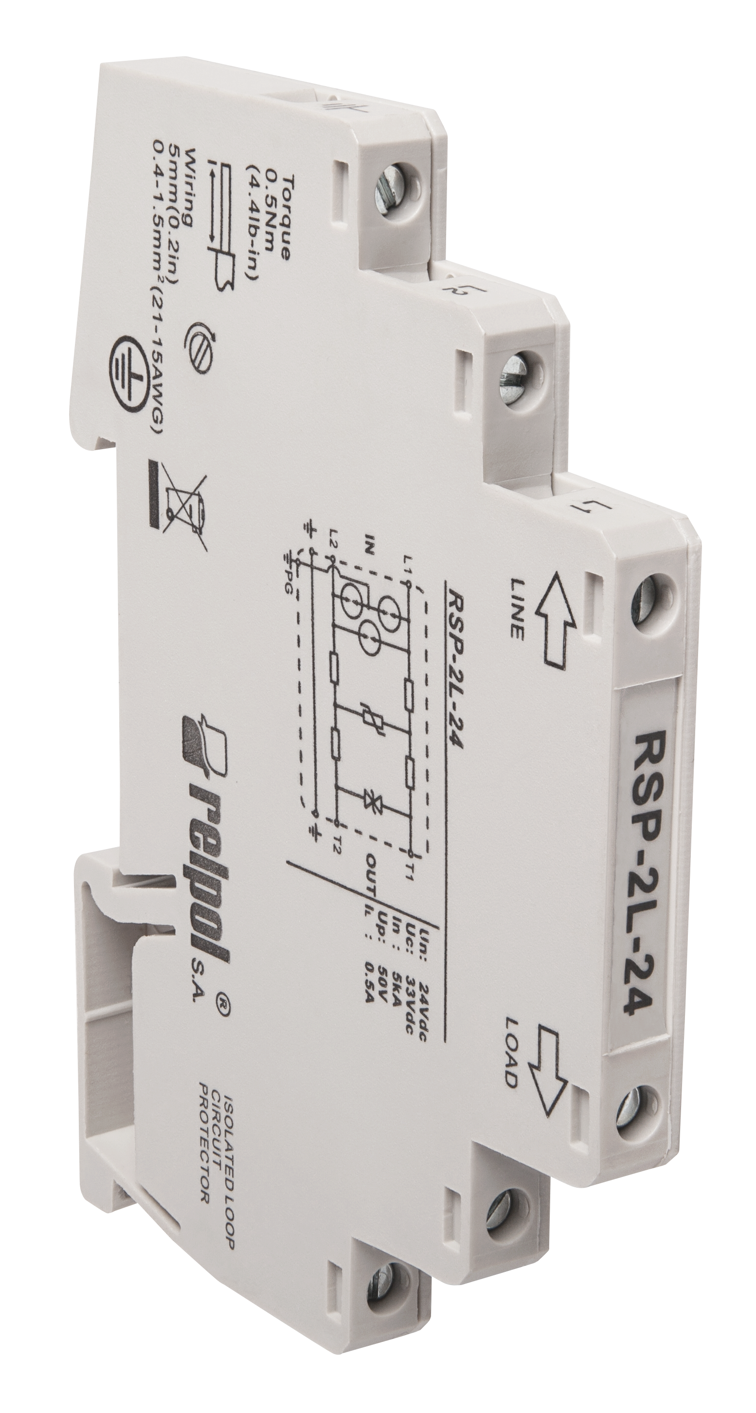 Ogranicznik przepięć DC do ochrony linii danych/sygnałowych, 48 V DC RSP-2L-48