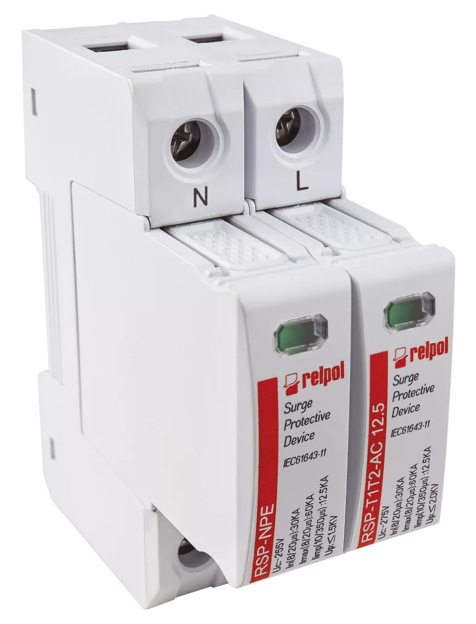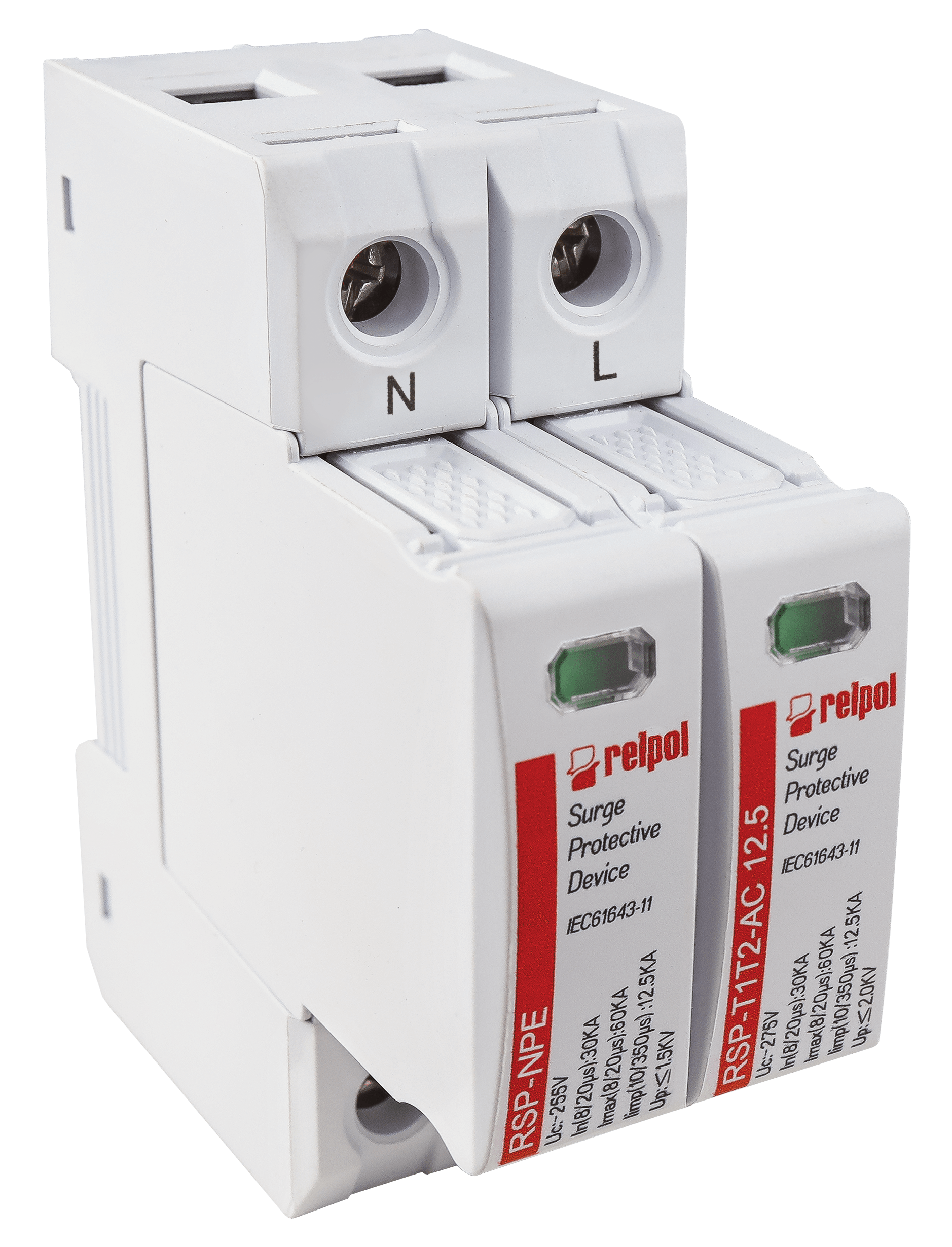 Ogranicznik przepięć typ T1+T2, biegun 1+NPE, Limp: 12,5 kA (10/350), In: 30kA (8/20), Imax: 60kA, Uc: 255V AC RSP-T1T2-AC 12.5/1+NPE