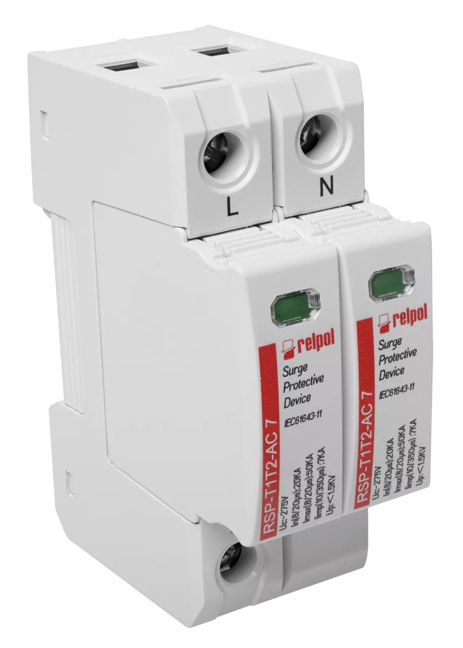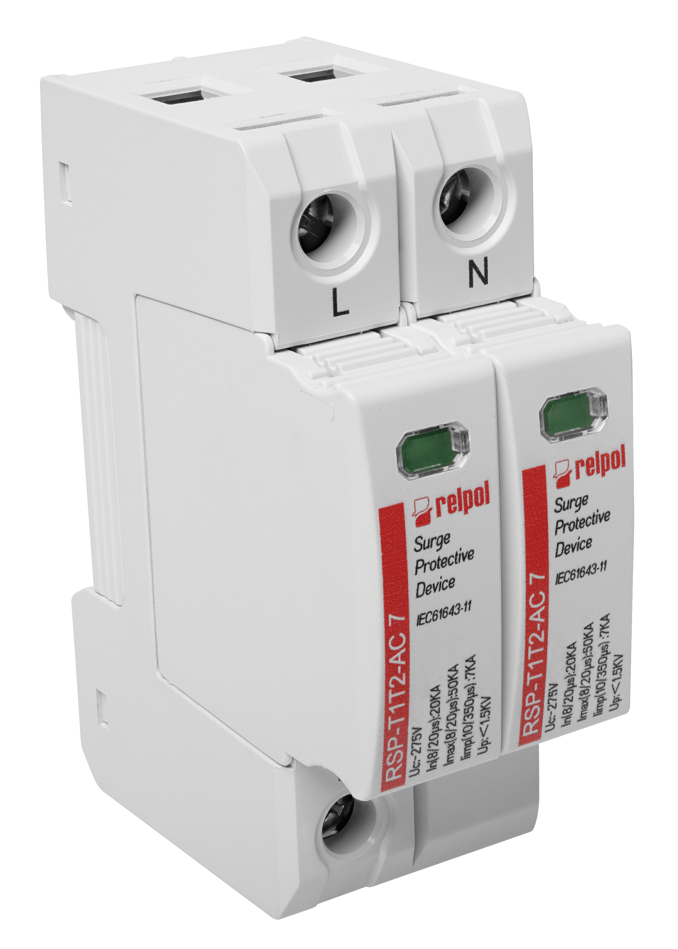 Ogranicznik przepięć typ T1+T2, 2 bieguny , Limp: 7 kA (10/350), In: 20kA (8/20), Imax: 50kA, Uc: 275V AC RSP-T1T2-AC 7/2P