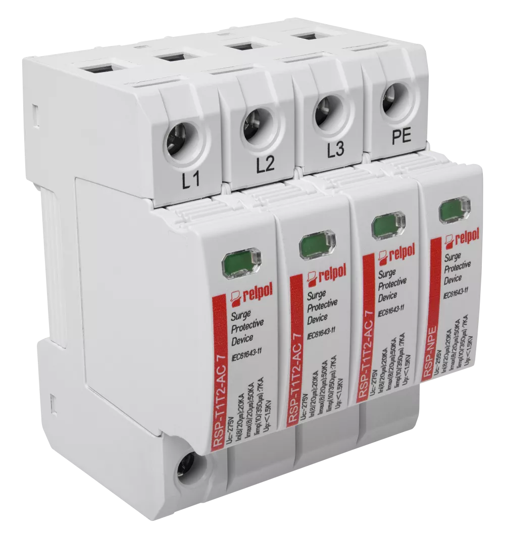 Ogranicznik przepięć typ T1+T2, 4 bieguny , Limp: 7 kA (10/350), In: 20kA (8/20), Imax: 50kA, Uc: 275V AC RSP-T1T2-AC 7/4P
