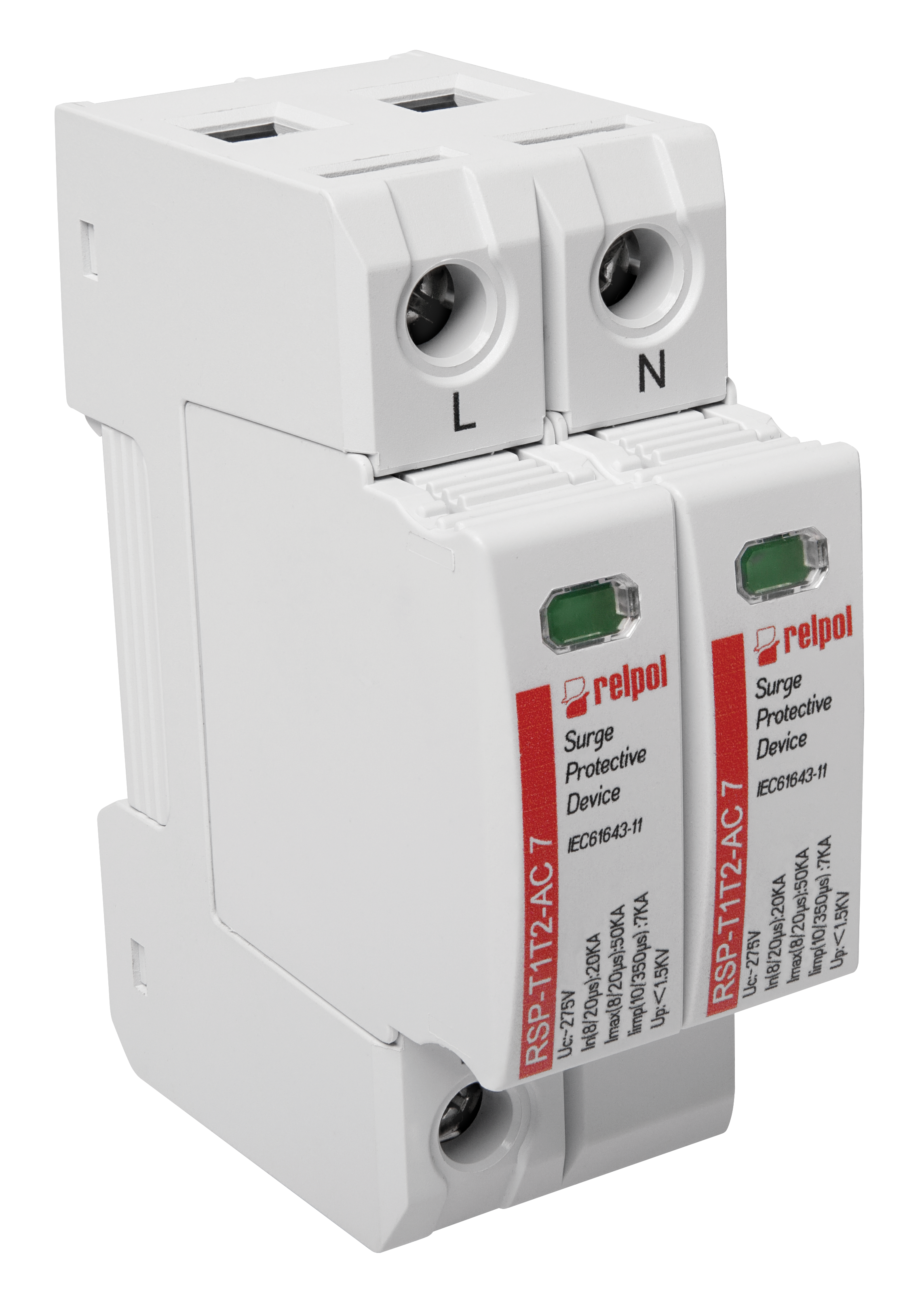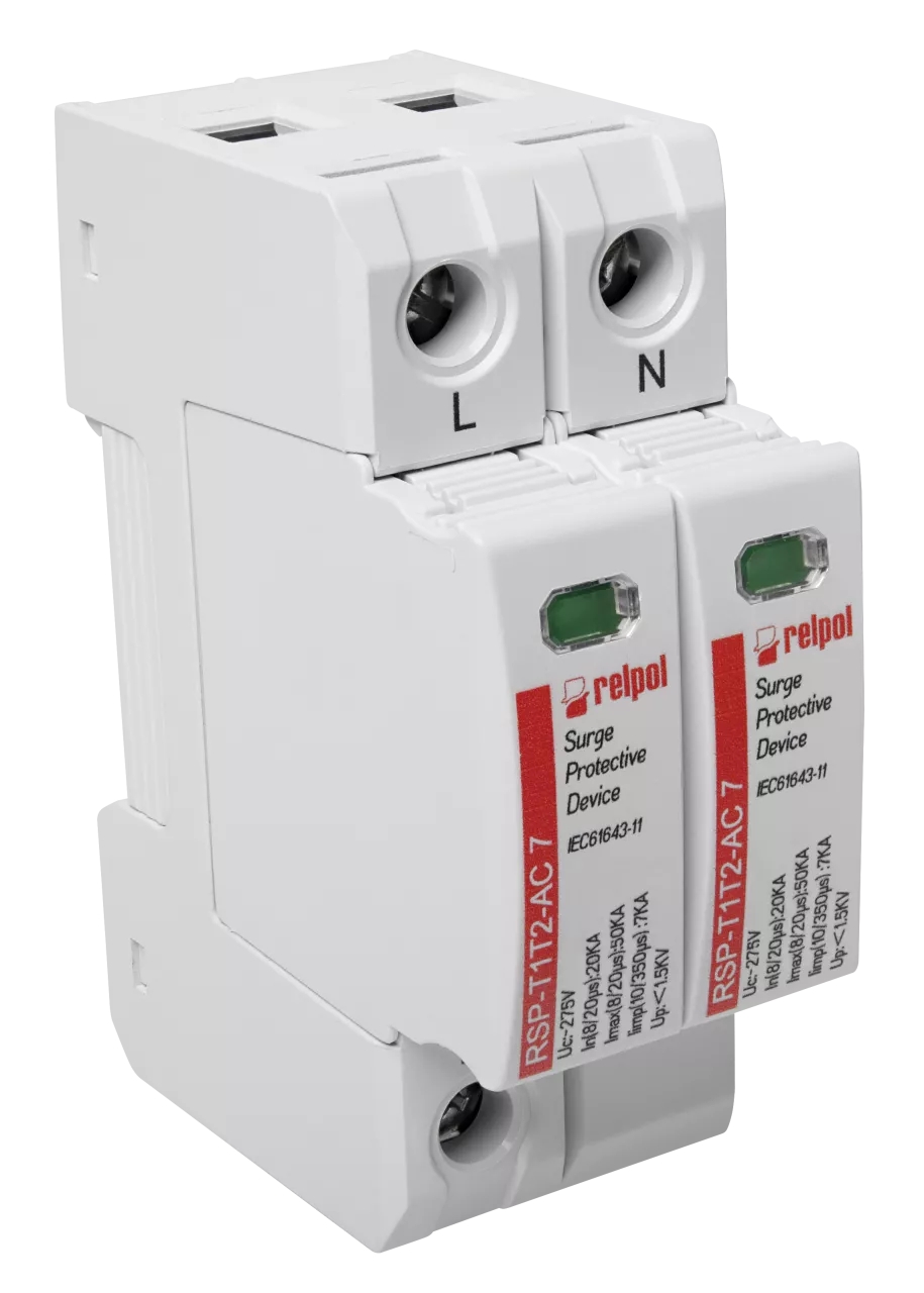 Ogranicznik przepięć typ T1+T2, biegun 1+NPE , Limp: 7 kA (10/350), In: 20kA (8/20), Imax: 50kA, Uc: 255V AC RSP-T1T2-AC 7/1+NPE