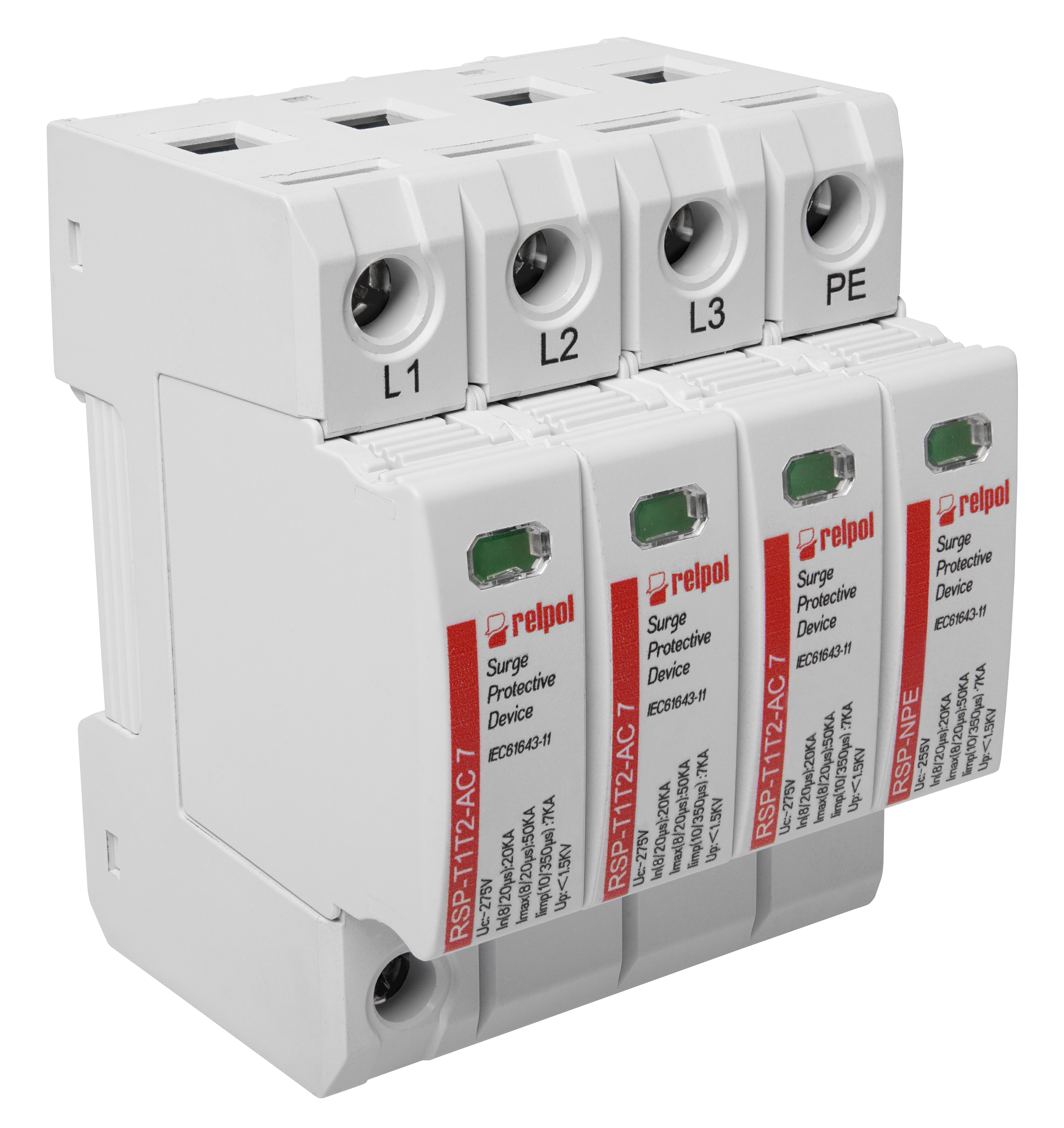 Ogranicznik przepięć typ T1+T2, biegun 3+NPE , Limp: 7 kA (10/350), In: 20kA (8/20), Imax: 50kA, Uc: 255V AC RSP-T1T2-AC 7/3+NPE
