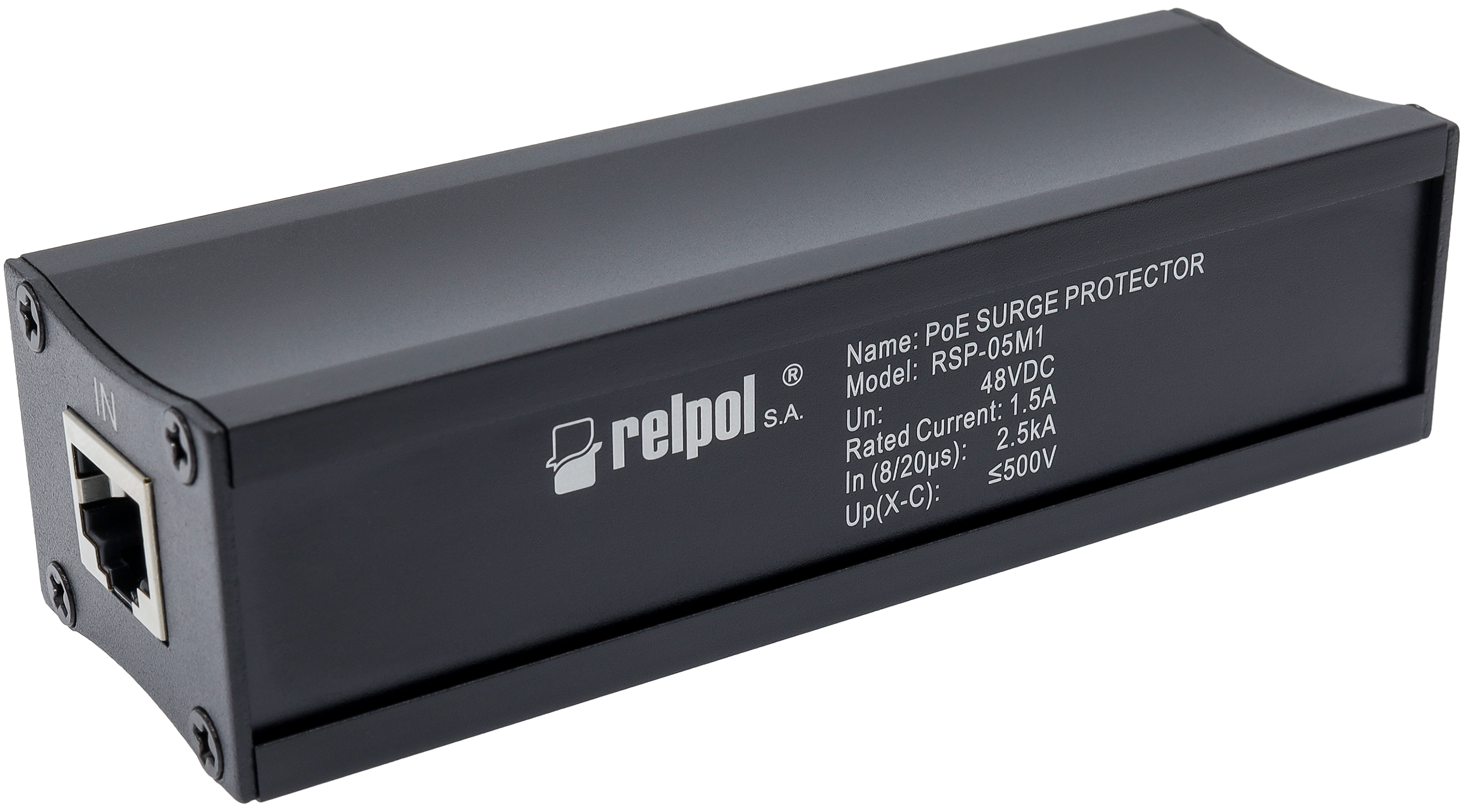 Uniwersalny jednotorowy ogranicznik do sieci typu Ethernet Power of Ethernet, wykonanie do przemysłu i elektroniki użytkowej w systemach okablowania strukturalnego. Element rozładowujący szybkie warystory z iskiernikami gazowymi GDT i szybkimi diodami TVS. Maksymalny prąd wyładowczy Imax 2,5 kA. Znamionowy prąd In 1,5 A.