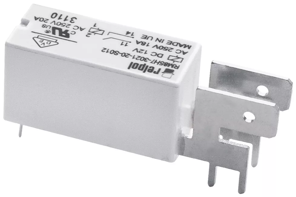 Przekaźniki RM85 faston, 1 zestyk zwierny, 16 A, do obwodów drukowanych i do połączeń wsuwkowych, wysokość 15,7 mm, fastony ułożone poziomo w rozstawie 7,5 mm, IP 40, styki AgSnO2. Wejście / cewka: A1(1) - A2(2), napięcie zasilania Un - 24 V DC. Opcje montażu gniazd: EC50, GD50, PW80 - do druku; GZP80 (push-in), GZ80, GZT80, GZM80, GZS80, GZF80 - montaż na szynie 35 mm lub przykręcane do płyty jedną śrubą M3.