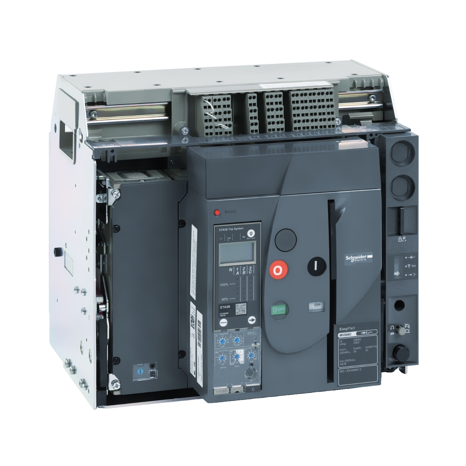 Masterpact MVS1, wyłącznik 800A, 50kA, 4P, napęd silnikowy, wysuwny, wyzwalacz ETA5, przyłącza tylne