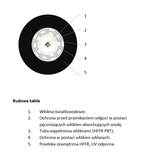 Uniwersalny kabel światłowodowy multimodowy OM3 w klasie B2ca. Całkowicie dielektryczny o lekkiej konstrukcji. Konstrukcja tuby centralnej z włóknami światłowodowymi. Tuba wypełniona żelem dla ochrony włókien przed przenikaniem wilgoci. Kabel wzmocniony, gryzonioodporny.