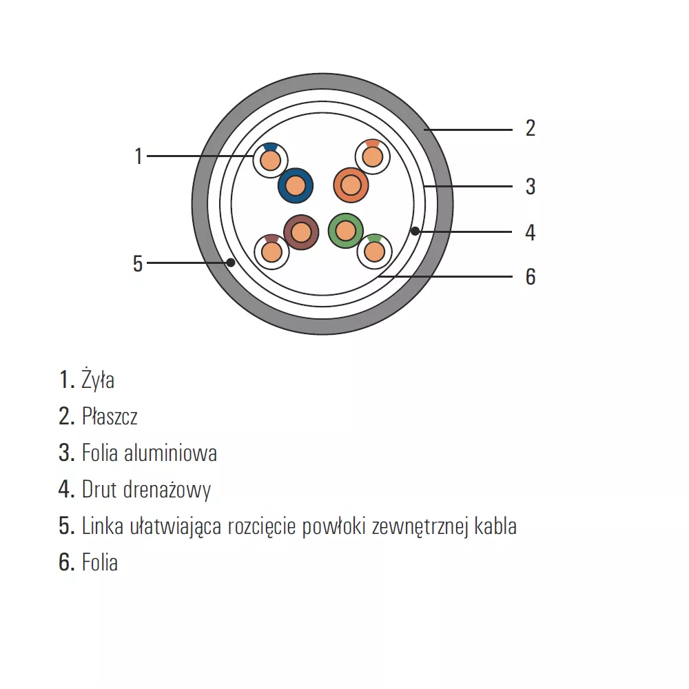 Instalacyjny kabel skrętkowy DomNET przeznaczony jest do wykonywania połączeń pomiędzy punktami dystrybucyjnymi sygnałów multimedialnych, a gniazdami przyłączeniowymi użytkowników. Kabel skrętkowy FTP (ekranowany) nadaje się idealnie do instalacji w sieciach komputerowych, telefonicznych, systemach CCTV itp., narażonych na zakłócenia elektromagnetyczne. Zastosowanie ekranu minimalizuje ryzyko zakłóceń, które występować mogą np. przy ułożeniu kabla we wspólnym korytku z kablem prądowym. Posiada powłokę zewnętrzną PVC. Kabel spełnia wymagania norm okablowania strukturalnego: ISO/IEC 11801, EN 50173, EIA/TIA 568-B.2.