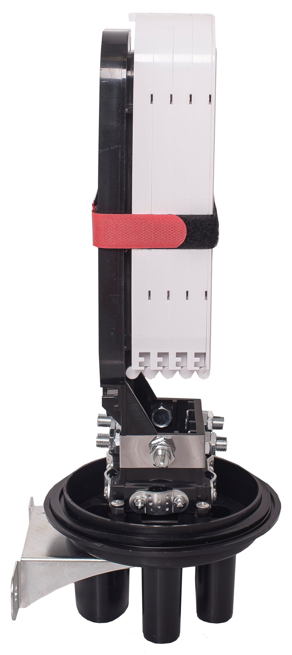 Osłona światłowodowa wyposażona w hermetyczne, termozgrzewalne porty wlotu/wylotu, stosowana jest do ochrony spawów magistralnych i rozdzielczych kabli światłowodowych. Materiał Polypropylene (PP) tworzy obudowę odporną na promieniowanie UV. Szeroki zakres pracy temperatur (-40°C ÷ + 60°C) oraz odporność na substancje chemiczne sprawia, że nadaje się zarówno do instalacji napowietrznych jak i kanałowych oraz doziemnych.