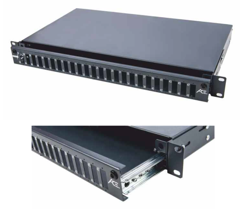 Panel wykonany z metalu. W tylnej części posiada od 4 do 8 otworów pod przepusty PG. Dwa zabezpieczenia zlokalizowane na frontowej części panela umożliwaiają blokadę przed przypadkowym wysunięciem. Każdy port pod adaptery światłowodowe został oznaczony kolejnym numerem w celu łatwej identyfikacji. W szufladzie zostały wytłoczone uchwyty do organizacji włókien za pomocą standardowych opasek zaciskowych. Zastosowano dodatkowe elementy pozwalające na zamocowanie kabla liniowego, zabezpieczając tym samym możliwość jego przypadkowego wysunięcia. Szuflada znajduje się na prowadnicach, co pozwala na jej wysunięcie poza obręb panela – dzięki temu uzyskujemy komfortowy dostęp do portów PG znajdujących się w jego tylnej części.