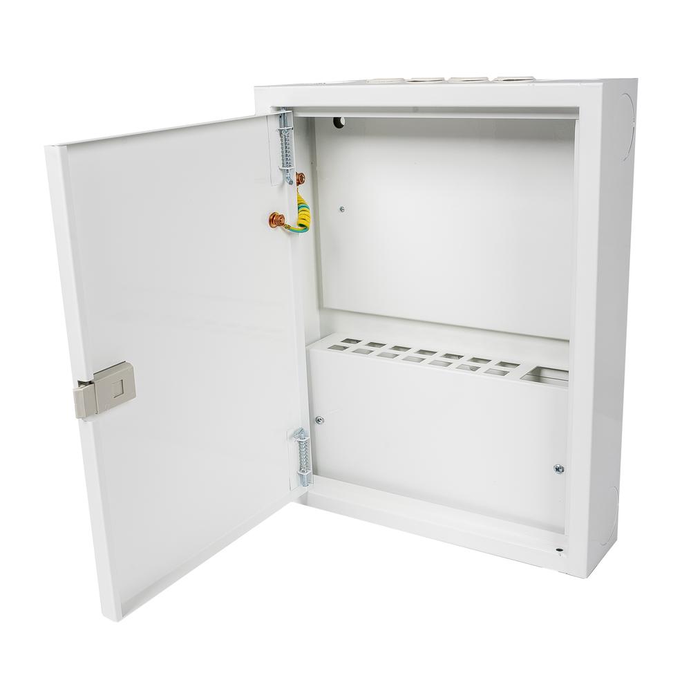 Kompaktowa skrzynka przeznaczona do instalacji w budynkach jedno i wielorodzinnych w wersji natynkowej lub podtynkowej. Skrzynka spełnia wszystkie wymagania rozporządzenia ministra transportu, budownictwa i gospodarki morskiej w sprawie warunków technicznych, jakim powinny odpowiadać budynki i ich usytuowanie z 2012 roku. Wyposażona w pole krosowe z 14 otworami na złącza KEYSTONE z możliwością dowolnego wykorzystania na potrzeby adapterów światłowodowych, złączy typu F oraz RJ45. Dodatkowo panel krosowniczy zawiera otwór przygotowany pod instalację gniazda elektrycznego 230V.