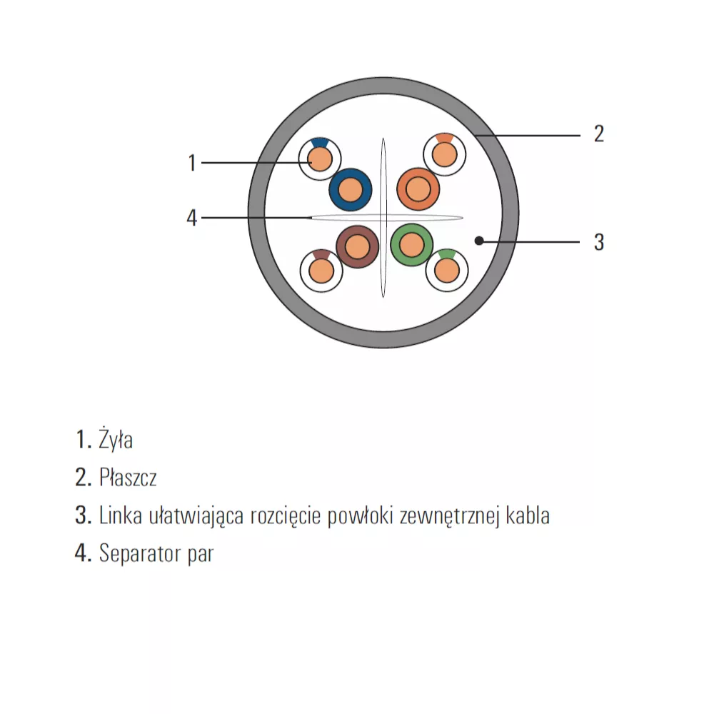 | Struktura skrętki: | Pary |