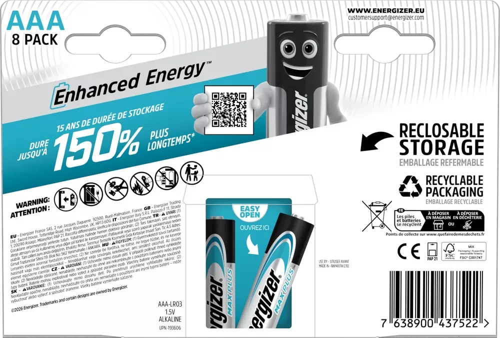 BATERIA ENERGIZER MAX PLUS AAA LR3 /8